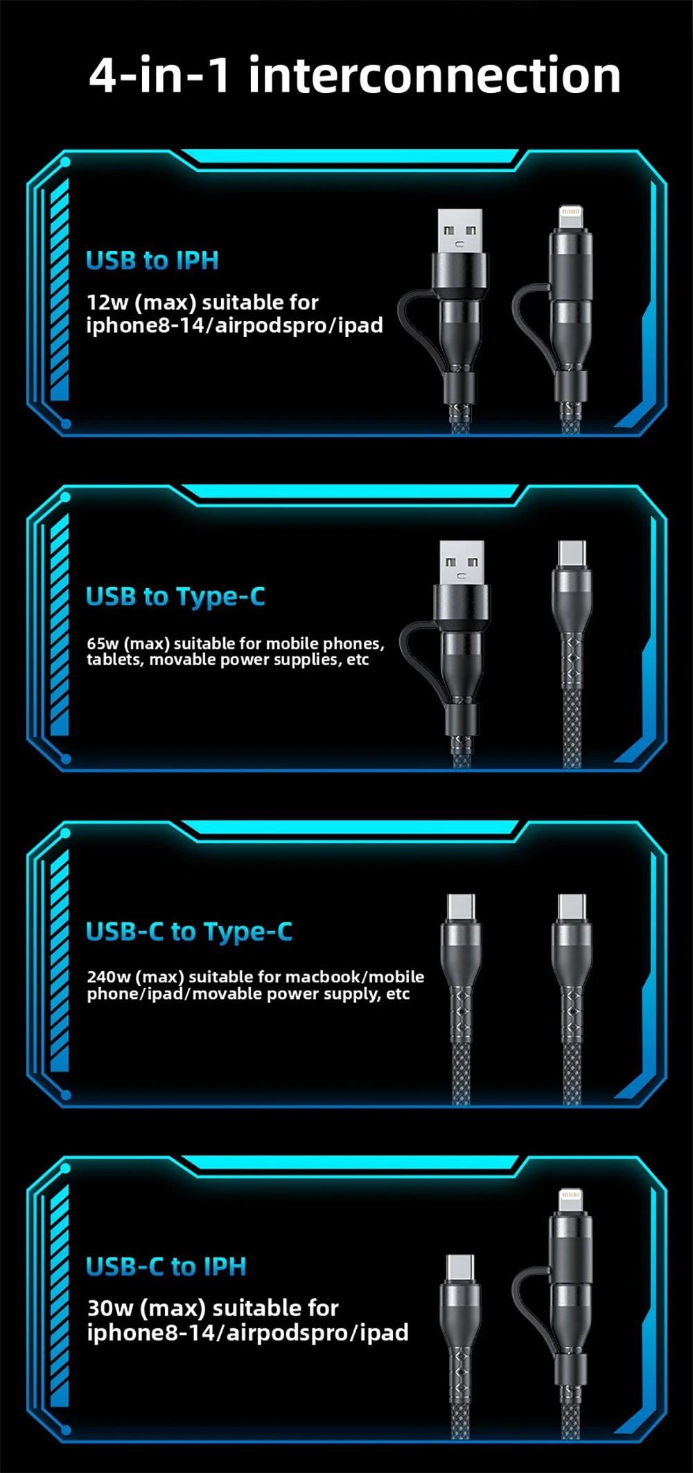 Artículo: 240 W Max Magnético 4 en 1 pd a cable iOS