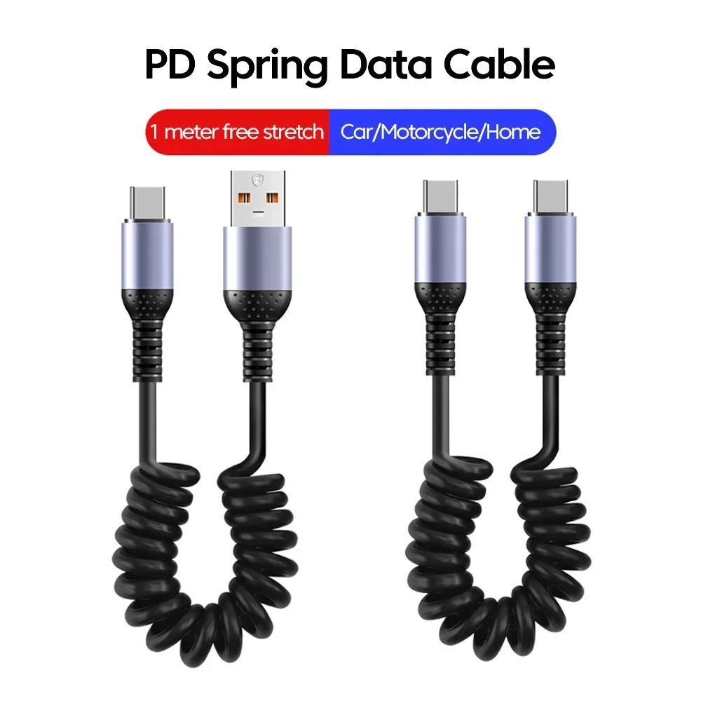 Comprar Cable de datos de resorte de 100W Cable de carga rápida retráctil tipo C a tipo C para iphone 15 Huawei Xiaomi Samsung Cable Dual tipo C