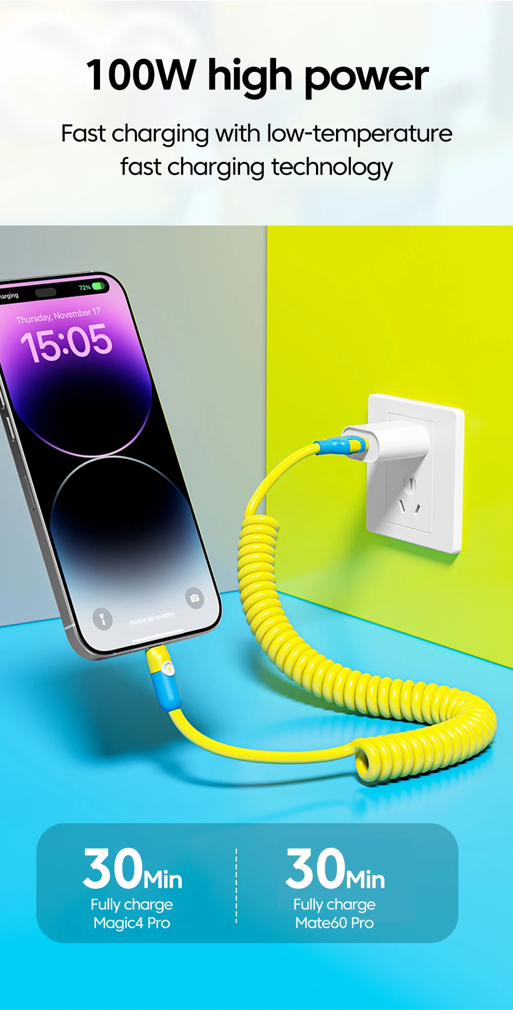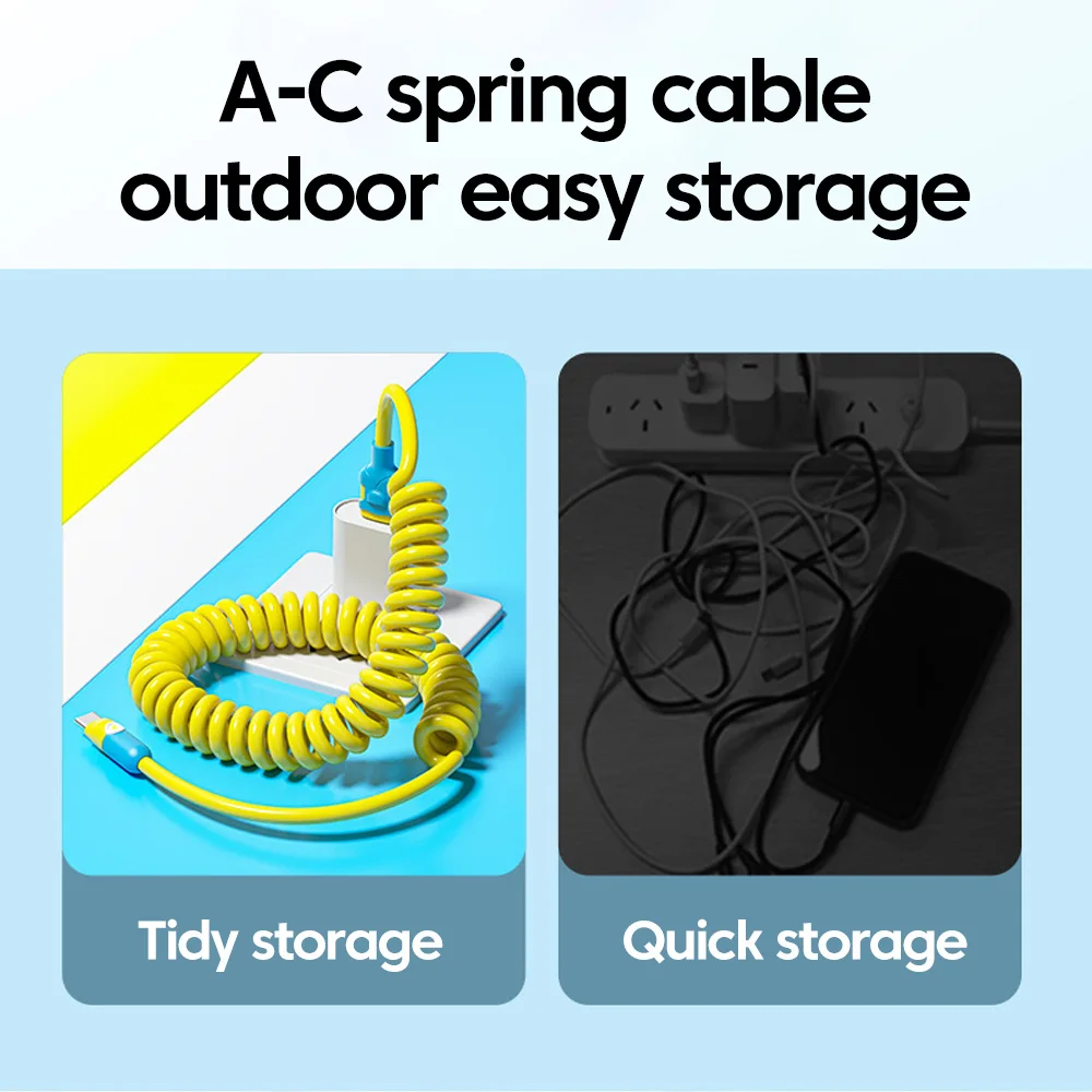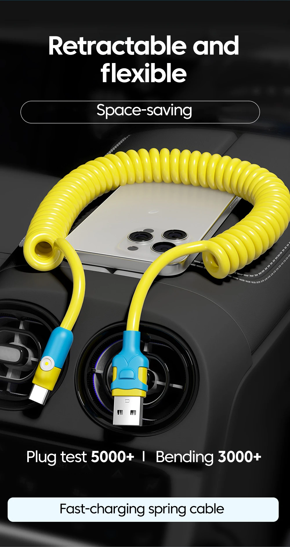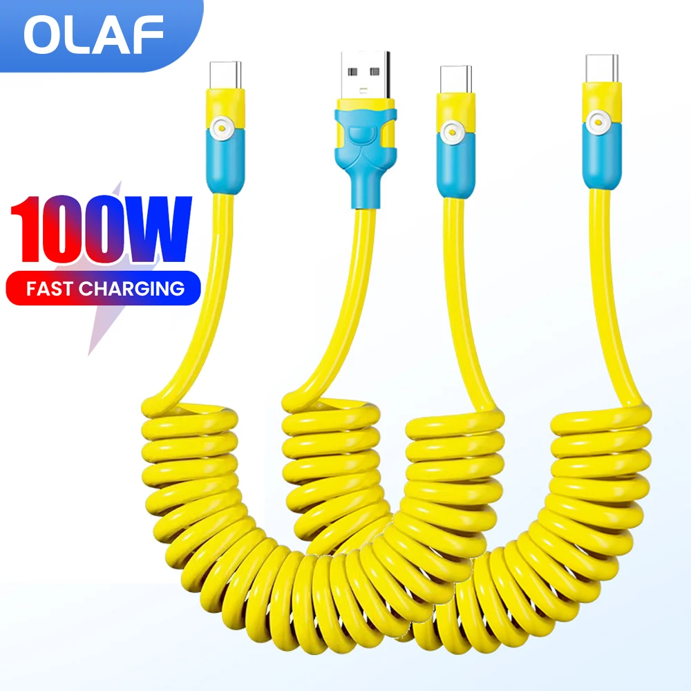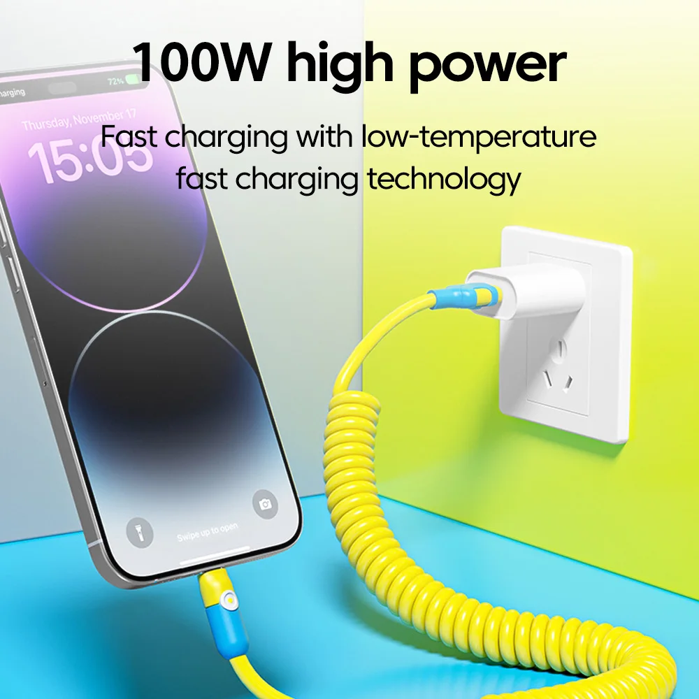 Comprar Cable de datos de resorte de coche de 100W Cable de carga rápida retráctil tipo C a tipo C para iphone 15 16 Samsung Huawei Xiaomi Cable tipo C
