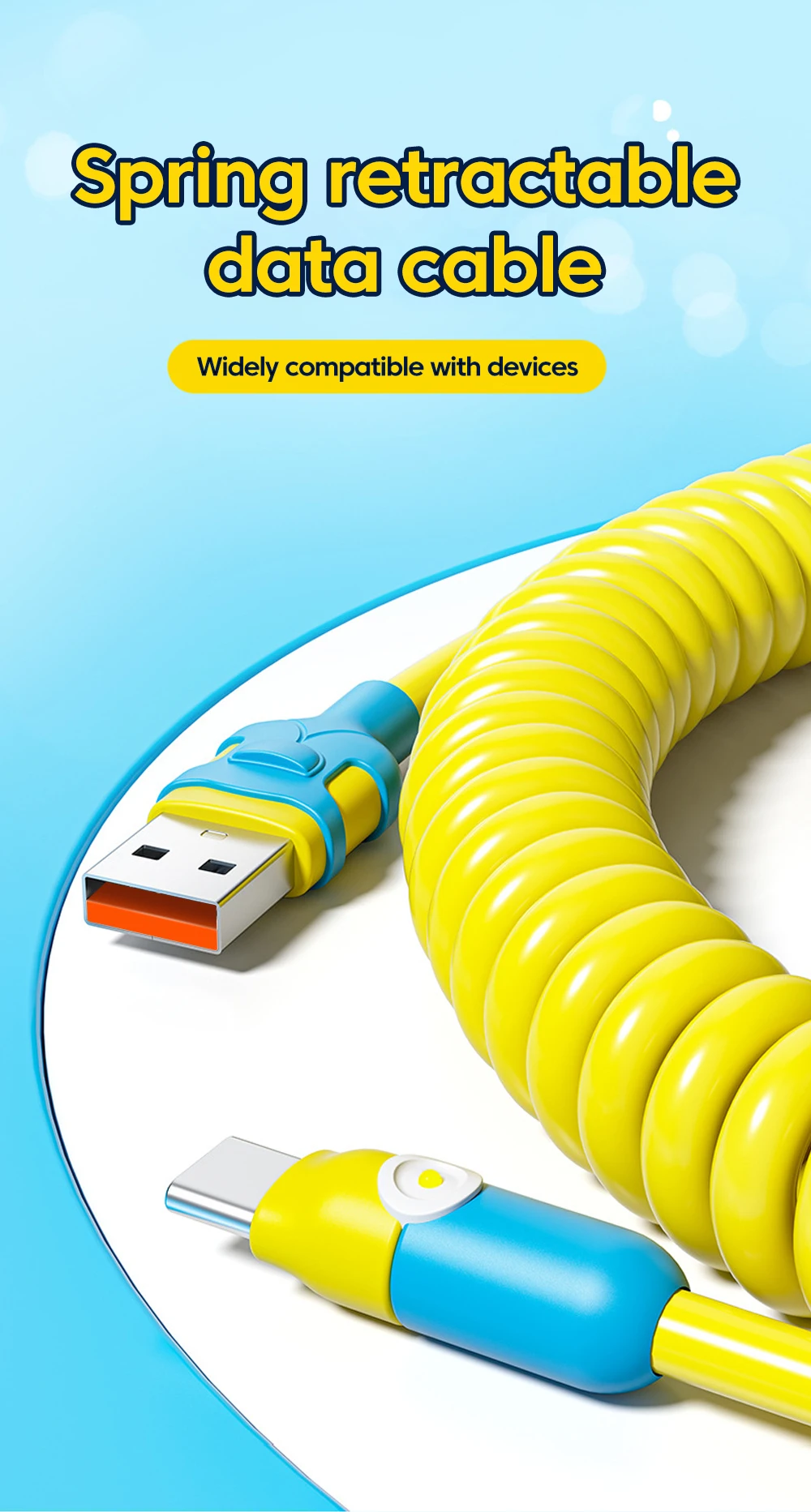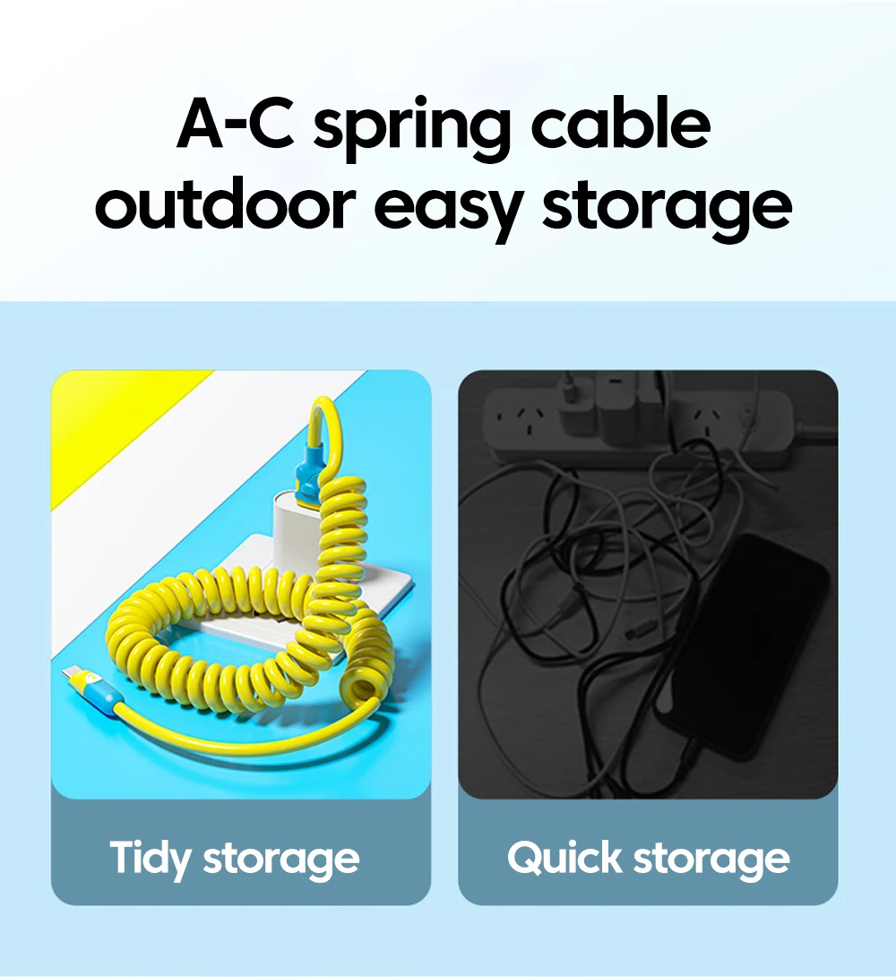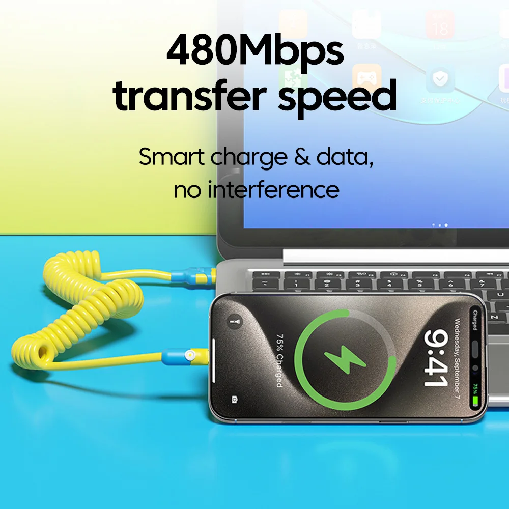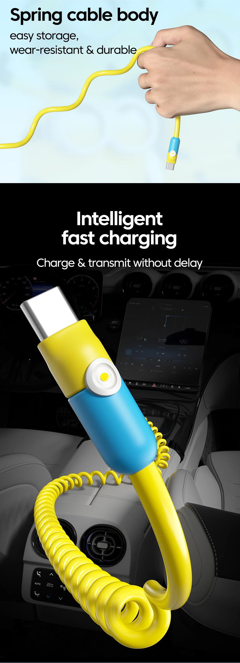 Comprar Cable de datos de resorte de coche de 100W Cable de carga rápida retráctil tipo C a tipo C para iphone 15 16 Samsung Huawei Xiaomi Cable tipo C