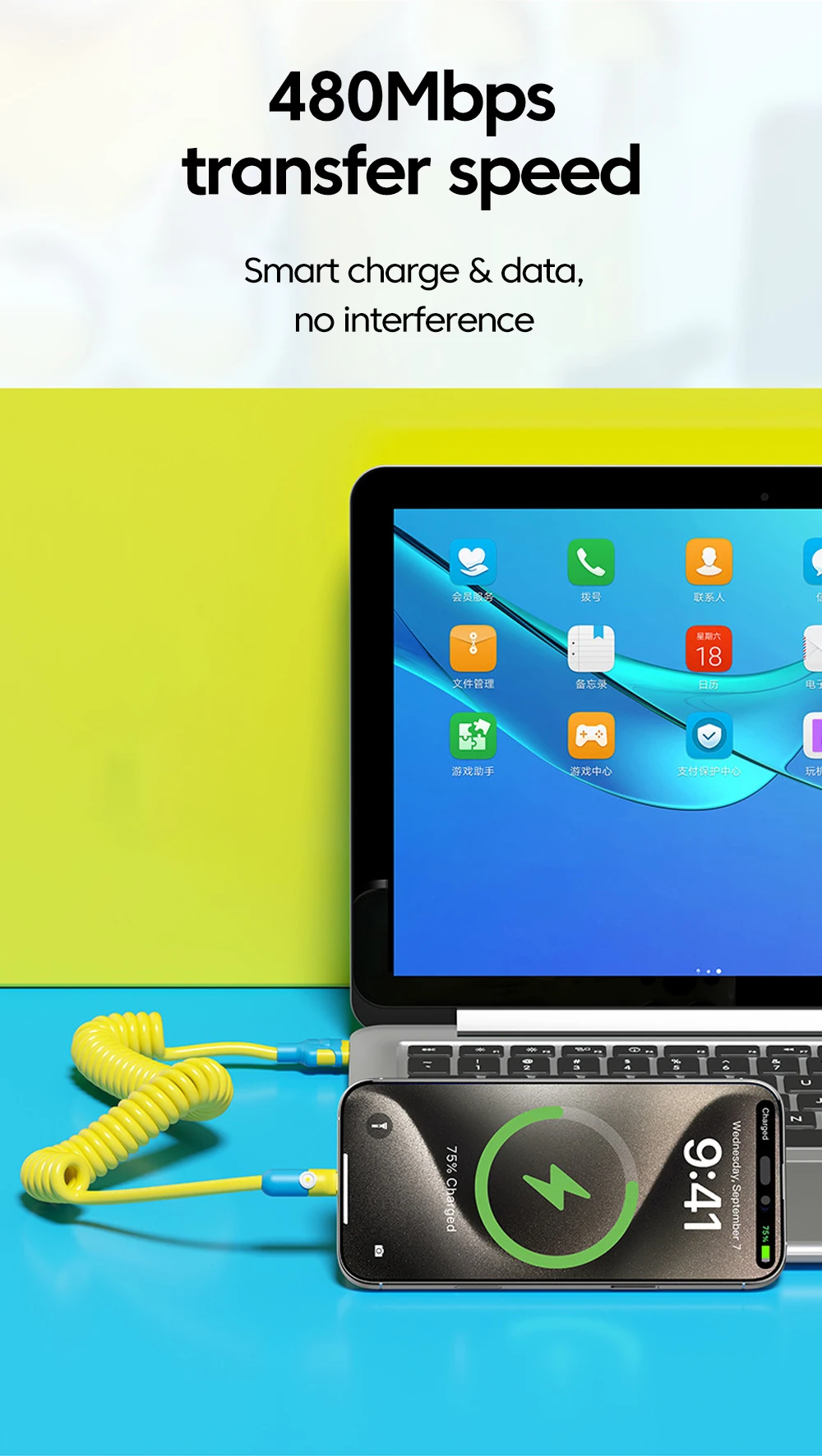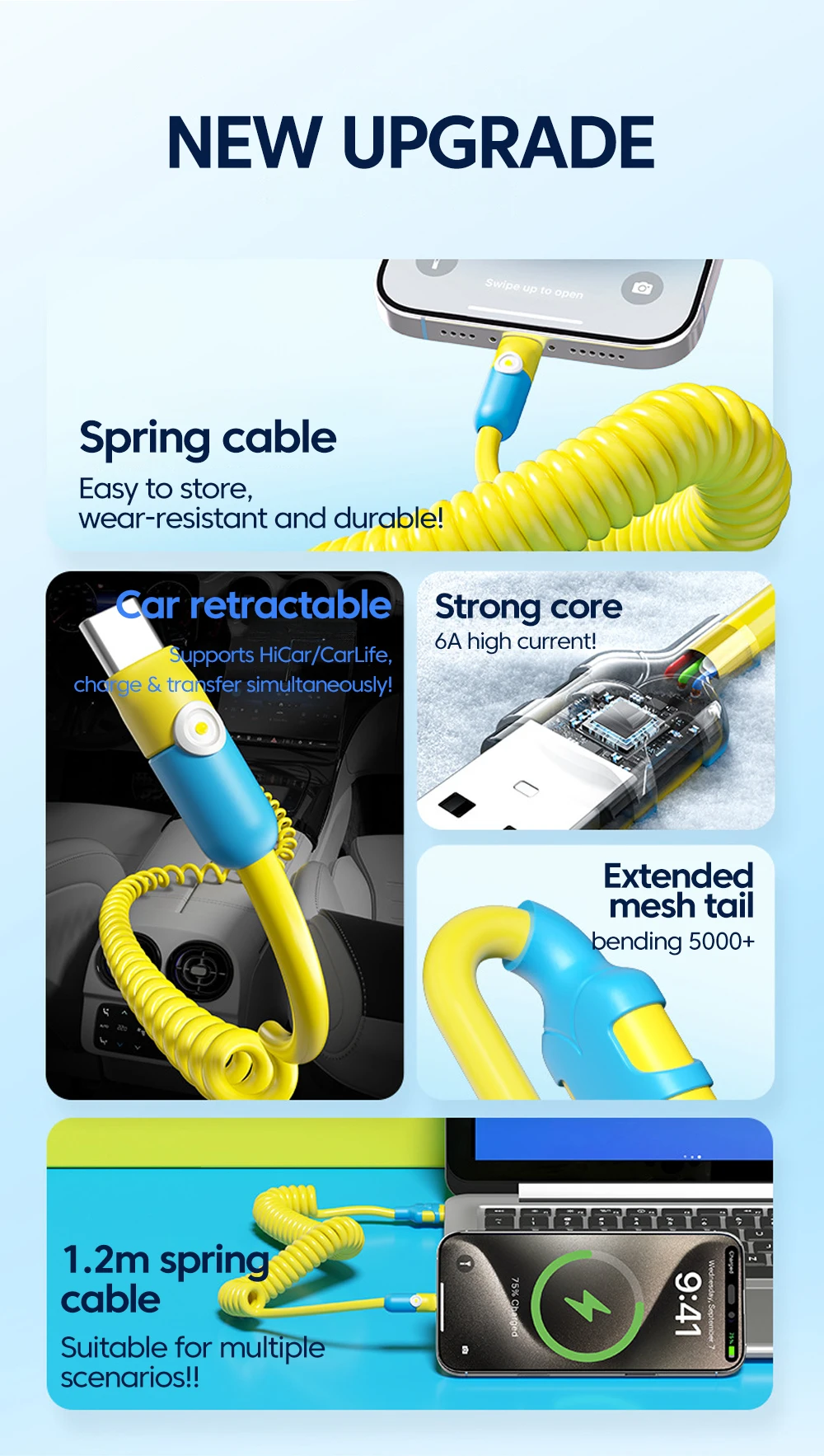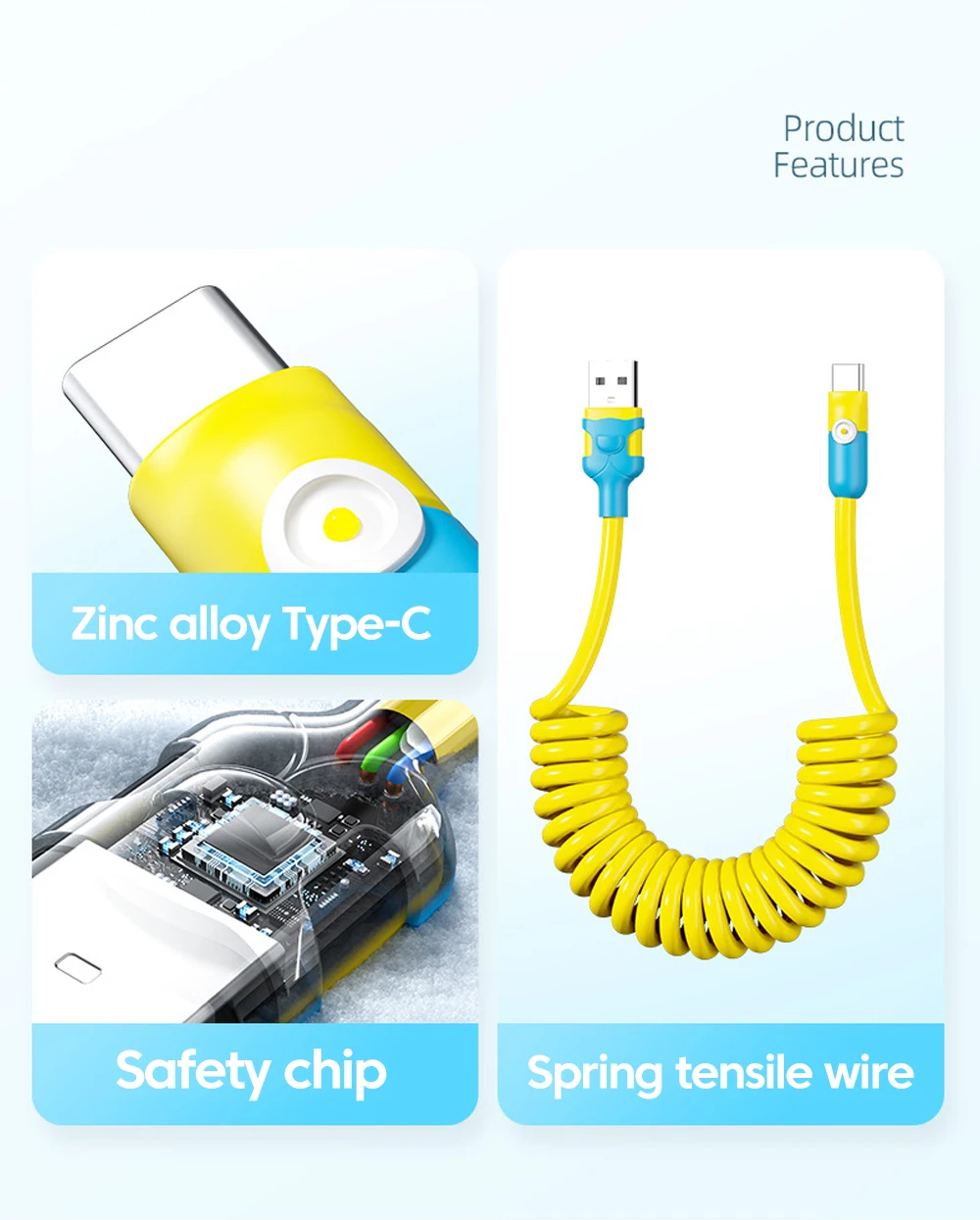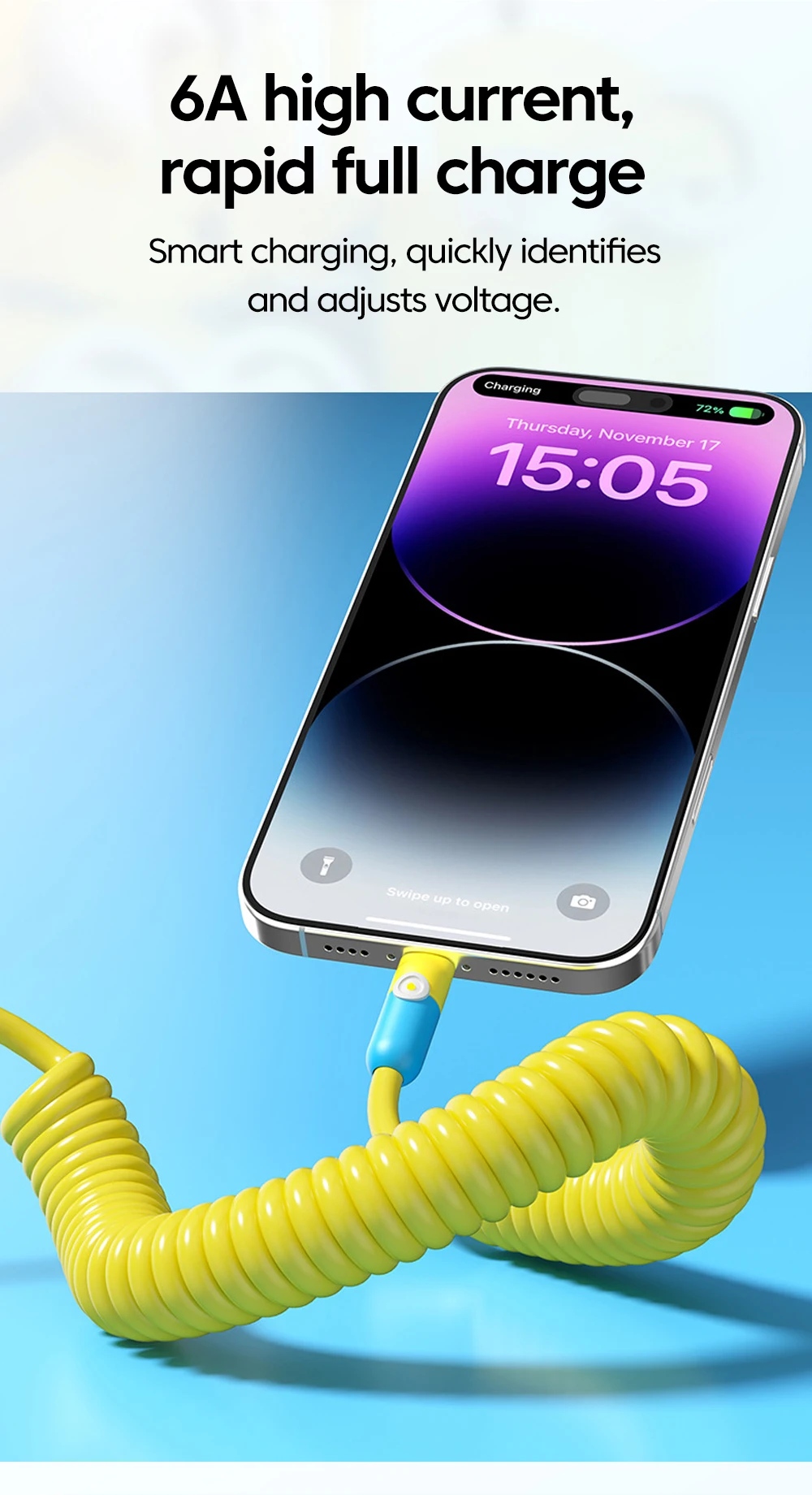 Comprar Cable de datos de resorte de coche de 100W Cable de carga rápida retráctil tipo C a tipo C para iphone 15 16 Samsung Huawei Xiaomi Cable tipo C