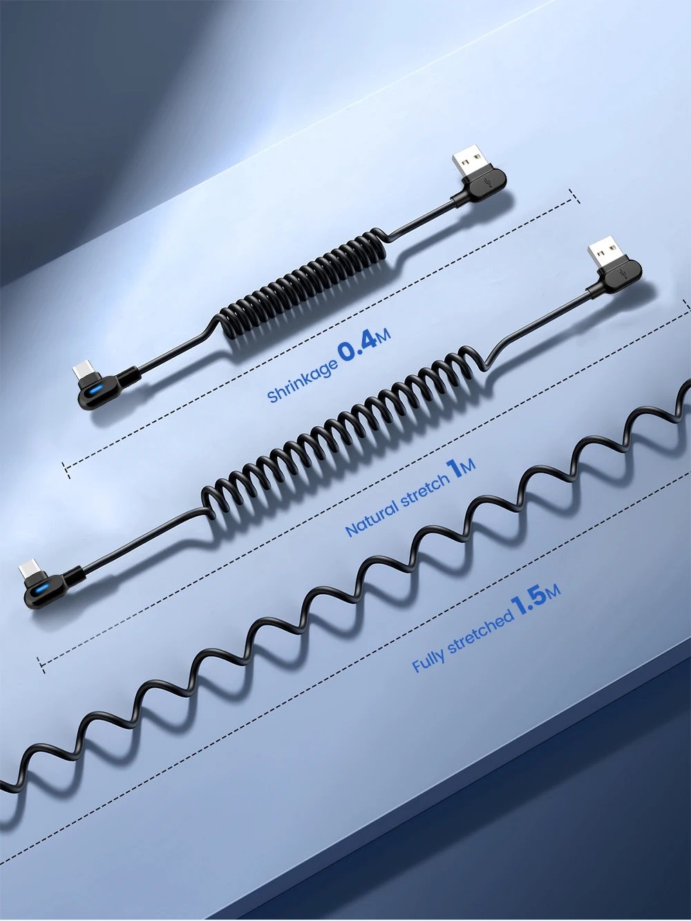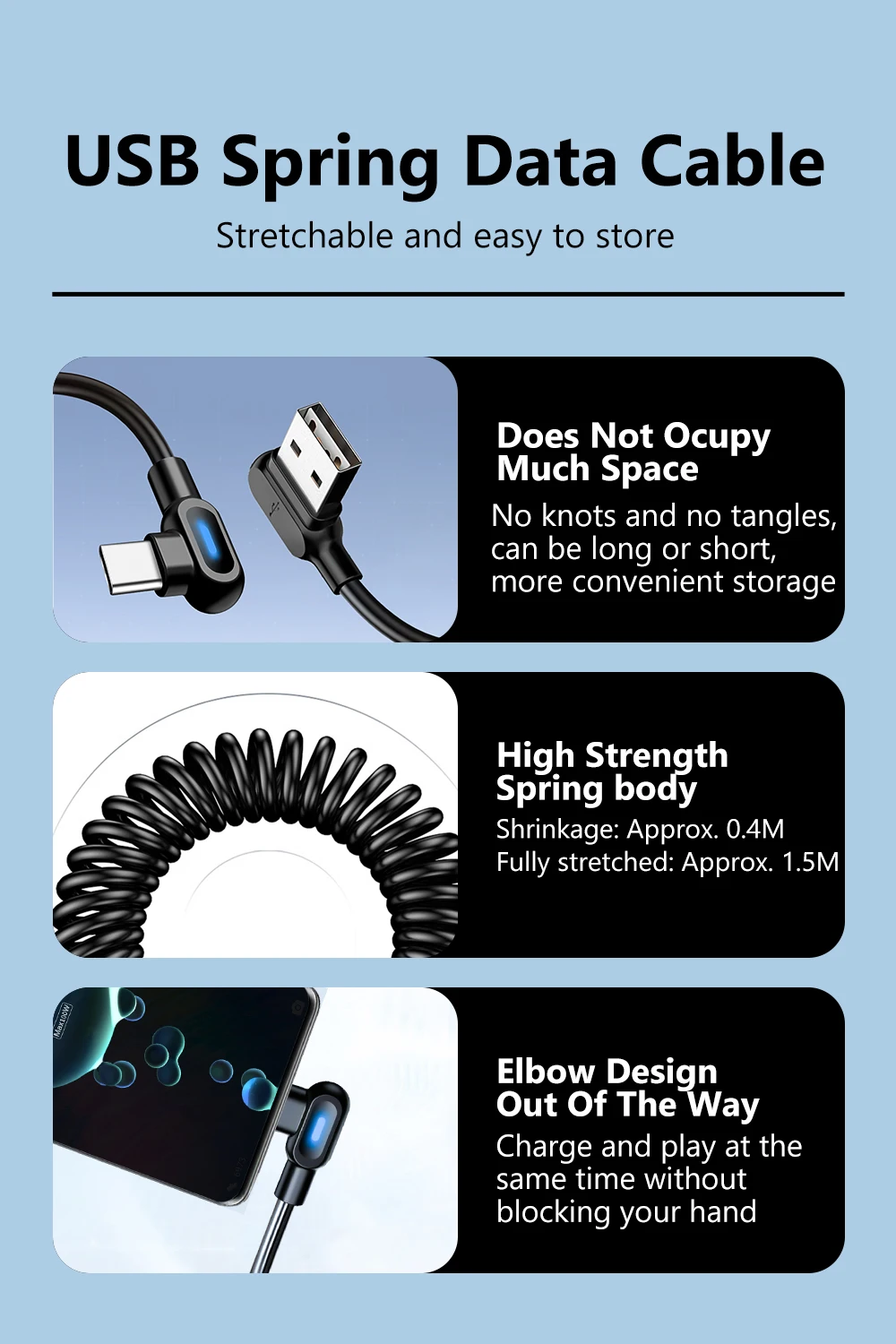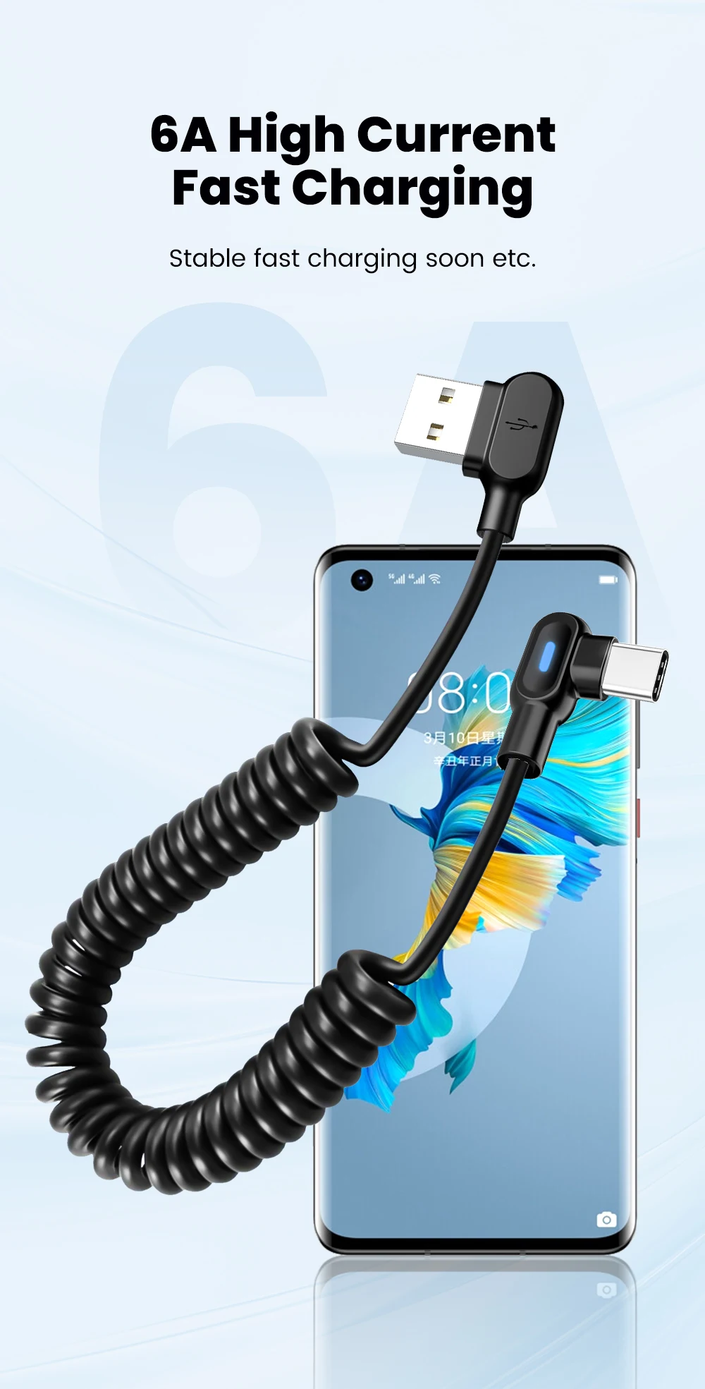 Cable de datos de resorte corto 6A, Cable de carga rápida USB C a tipo C para Samsung, Huawei, Xiaomi, Cable de cargador de teléfono