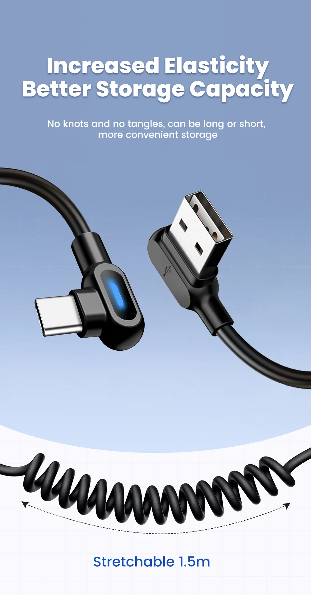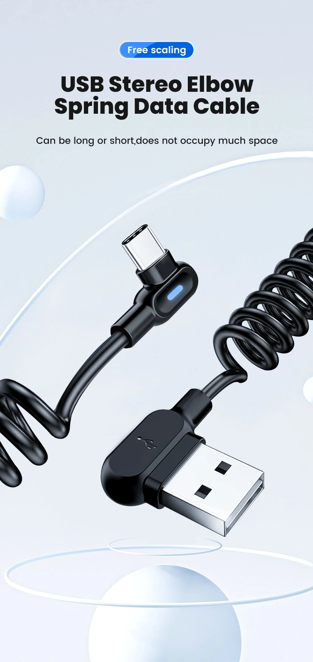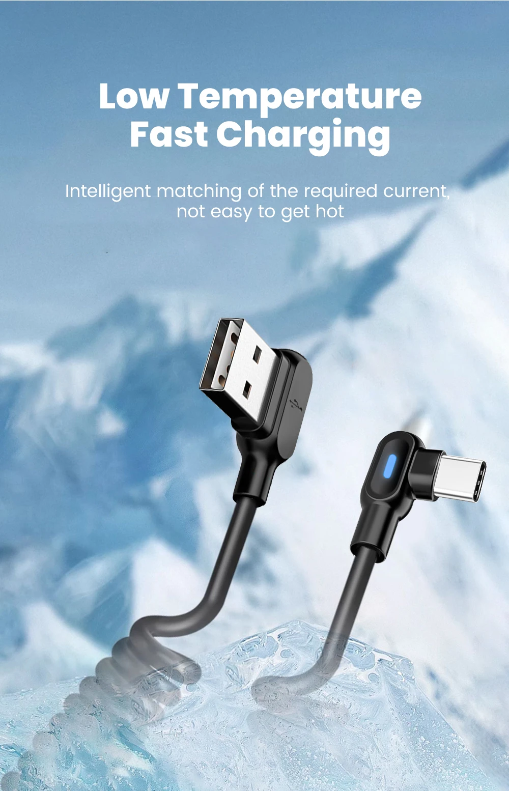 Cable de datos de resorte corto 6A, Cable de carga rápida USB C a tipo C para Samsung, Huawei, Xiaomi, Cable de cargador de teléfono