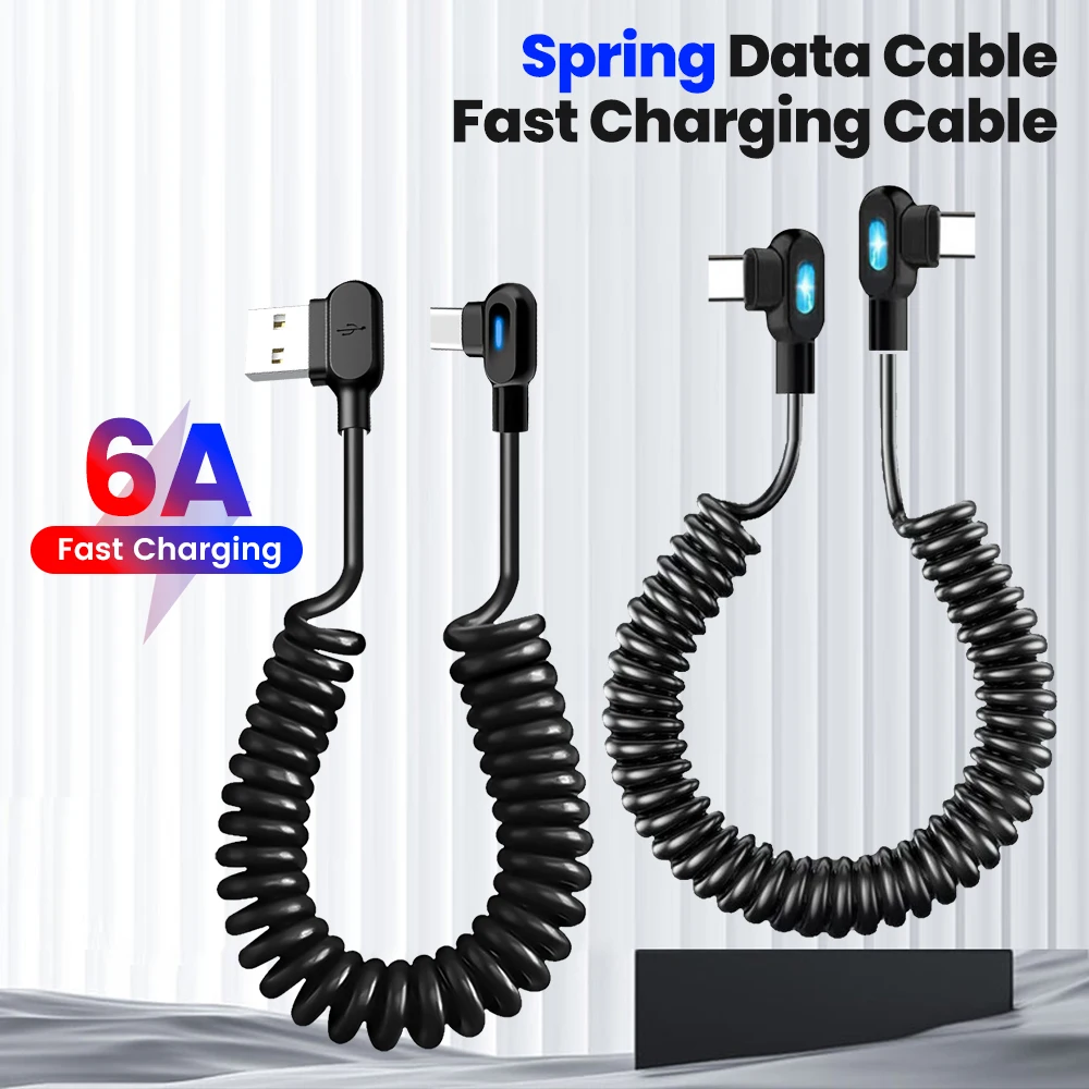 Comprar Cable de datos de resorte corto USB C a tipo C de doble codo 6A, Cable de carga rápida para iPhone Pro, Samsung, Xiaomi, cargador de teléfono Wir