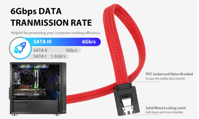 Nombre: Cable DE DATOS trenzado de unidad de estado sólido SATA3.0