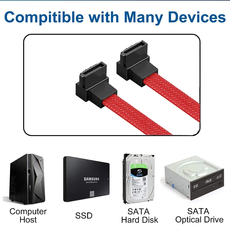 Cable DE DATOS DE 7 pines SATA 3,0 III SATA3 de 50CM, Cable SSD de ángulo recto de 6 Gb/s, Cable de datos de disco duro HDD con funda de nailon, versión Premium