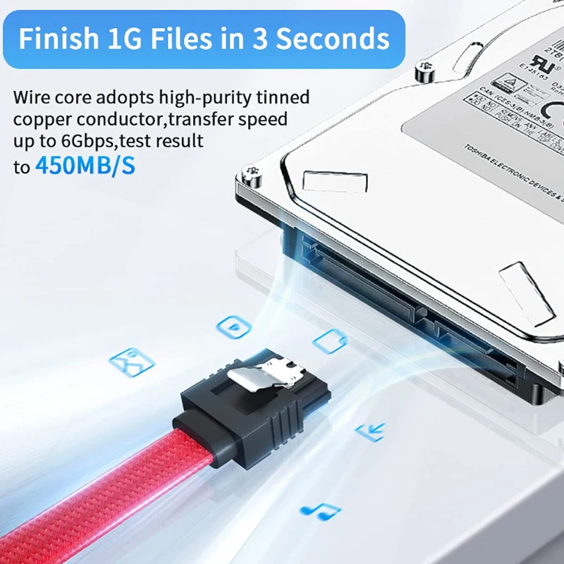 Cable DE DATOS SATA 3,0 con núcleo de cobre puro de alto estándar, cuerpo de cable SAS de doble canal, alta velocidad de transmisión y transmisión estable. Papel de aluminio 100% blindaje, puede resistir eficazmente la interferencia de radiación electromagnética externa, pero también para mejorar la estabilidad de la transmisión, el cable de acuerdo con la última fabricación y prueba estándar SATAIII, soporte perfecto para SATA 3,0 6Gbps, compatible con versiones anteriores SATA I/II, el disco duro SATA es universal.
