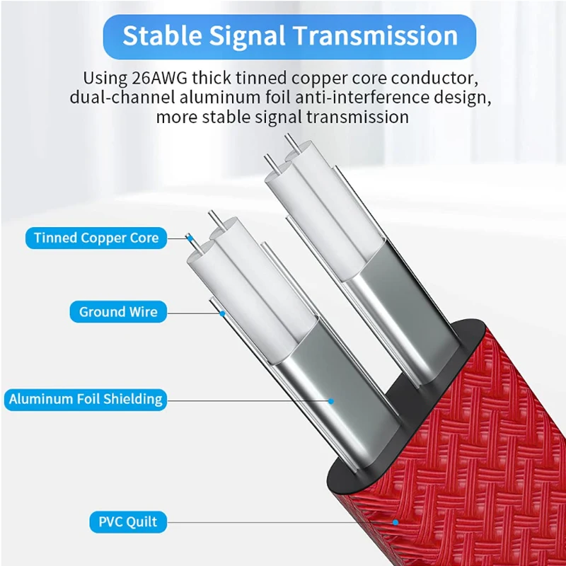 Especificaciones: 8 núcleos de cobre completo + protector de papel de aluminio + edredón exterior de protección ambiental de PVC + edredón exterior trenzado, velocidad de transmisión más estable y rápida