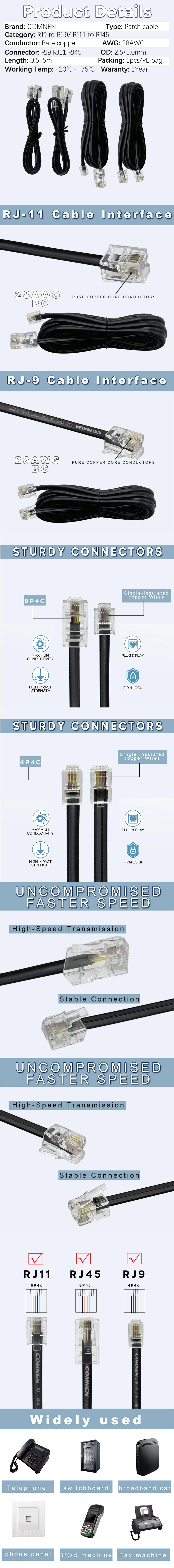 Comprar Cable de datos telefónico COMNEN RJ9 -RJ9/RJ11-RJ45 4P4C 6P4C 8P4C Cable de datos Modular macho a macho Cable de datos de extensión de voz