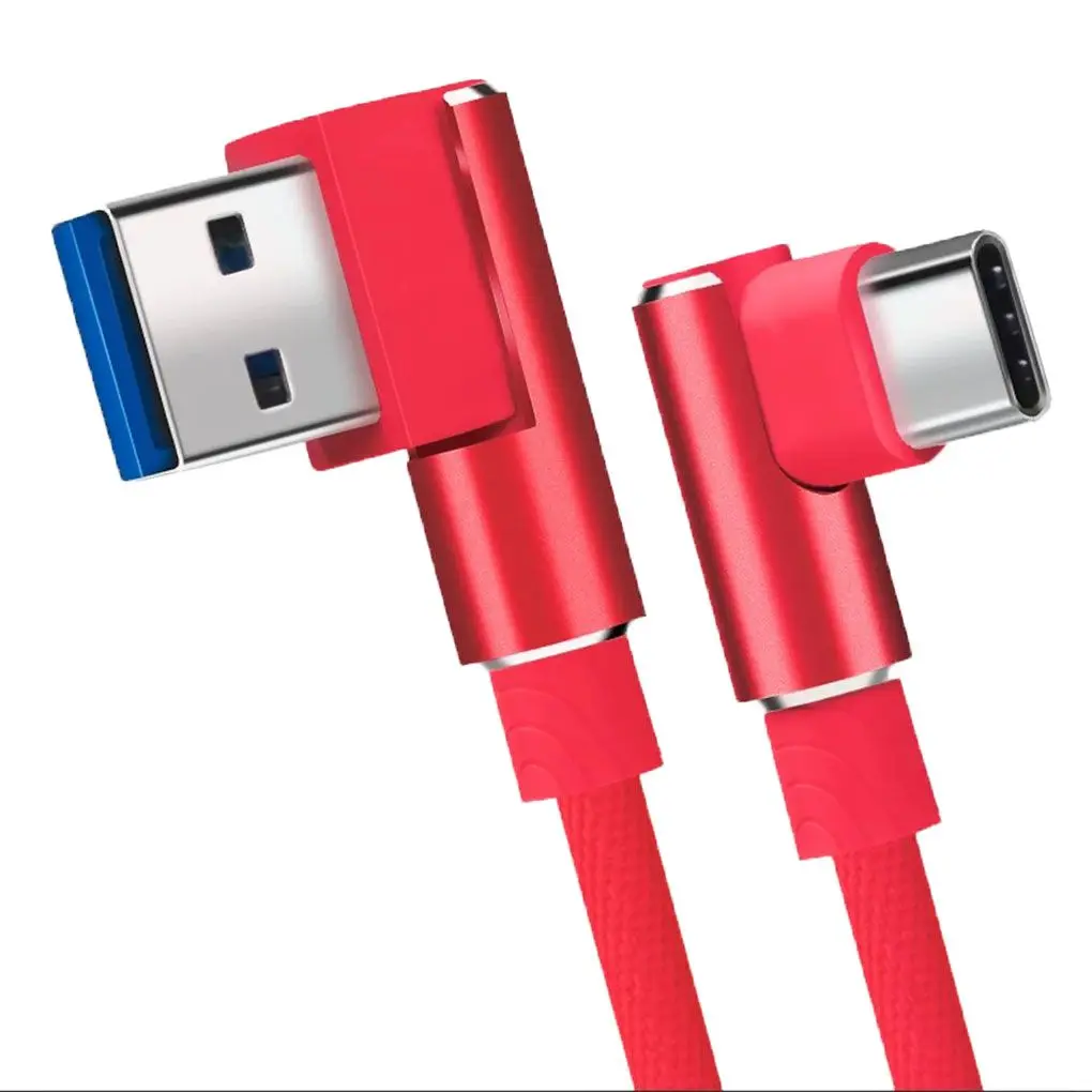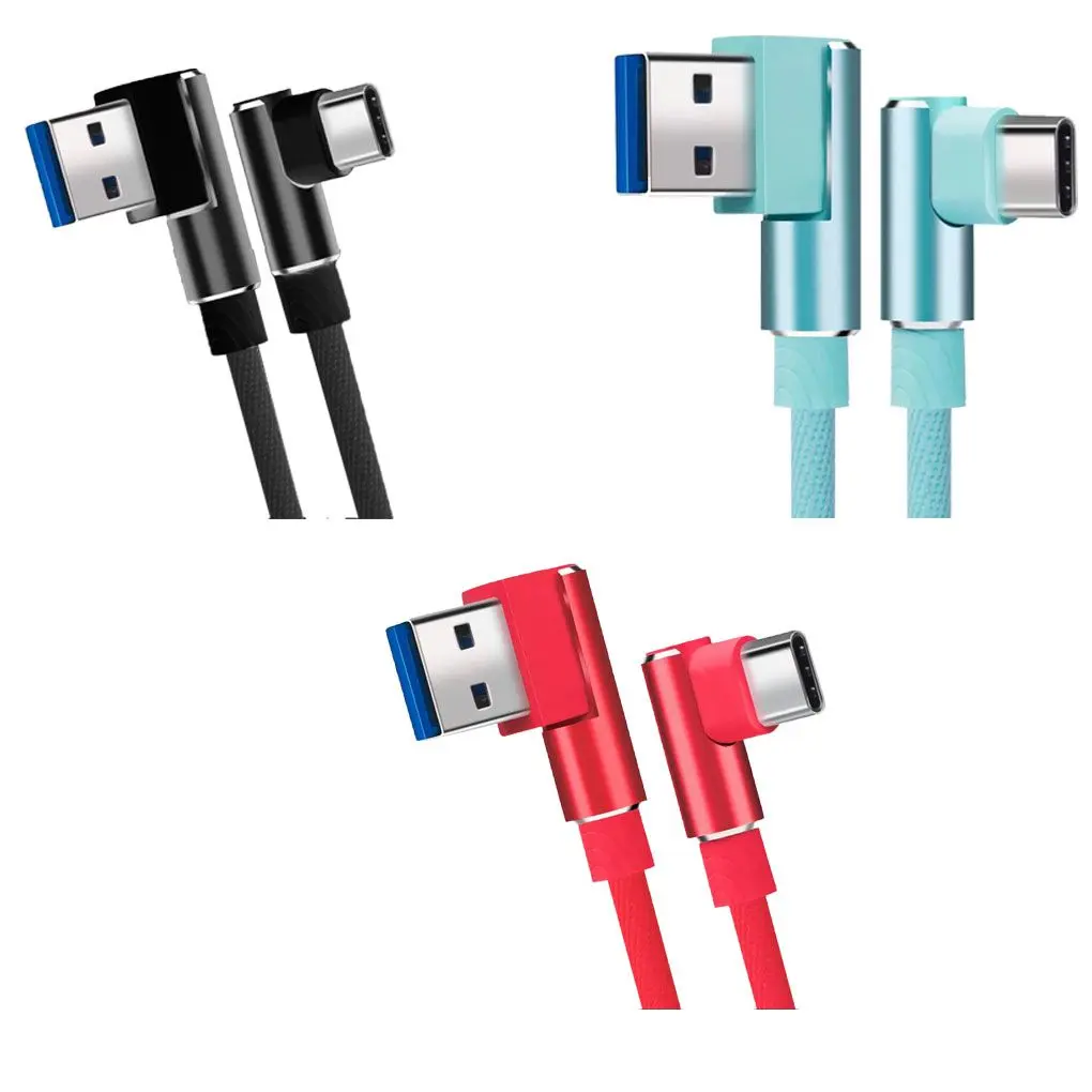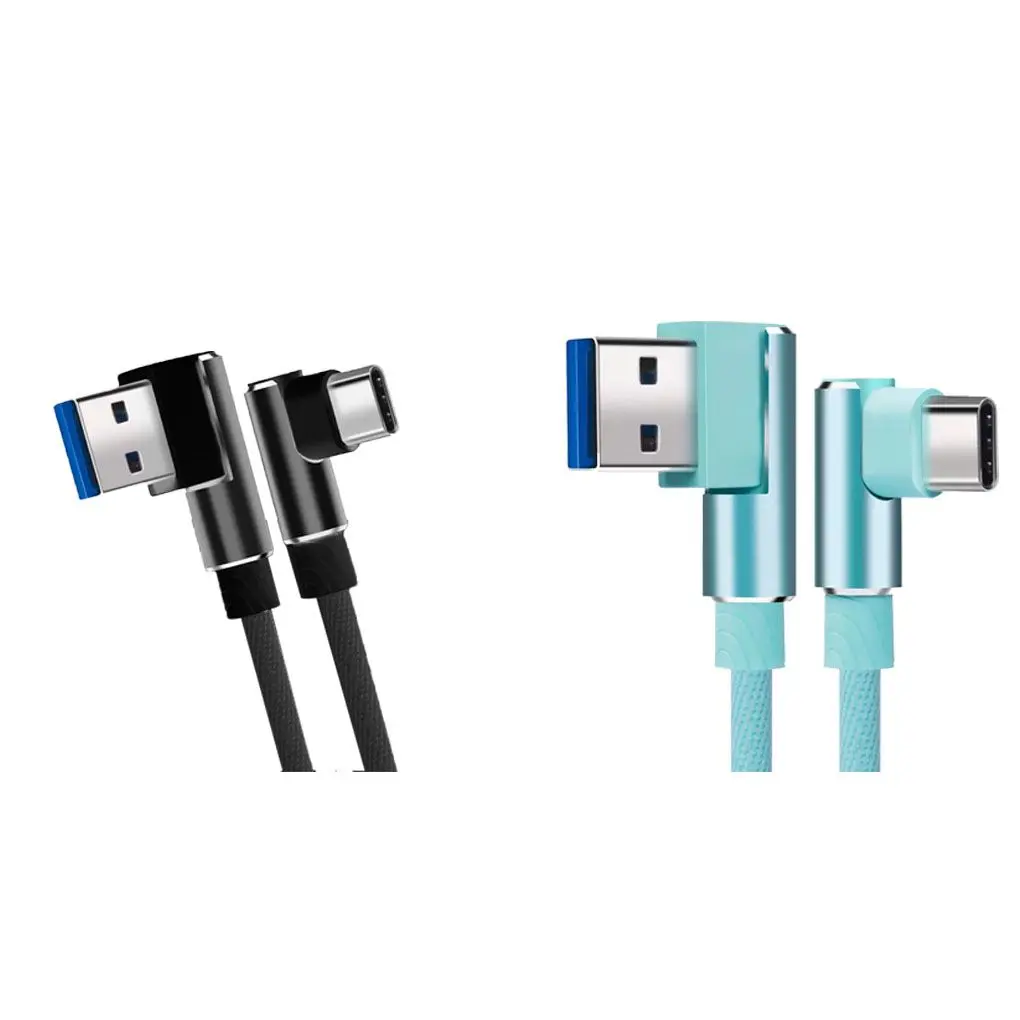Comprar Cable de datos de teléfono tipo C de 1, 2 y 3 metros, Cable de línea de carga de doble codo, corriente 2 A, 90 grados