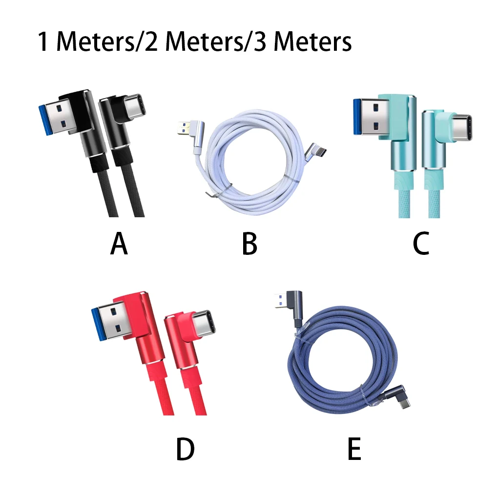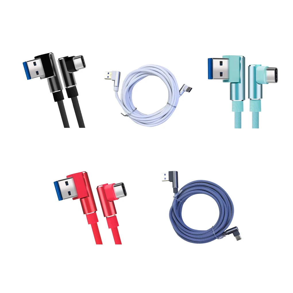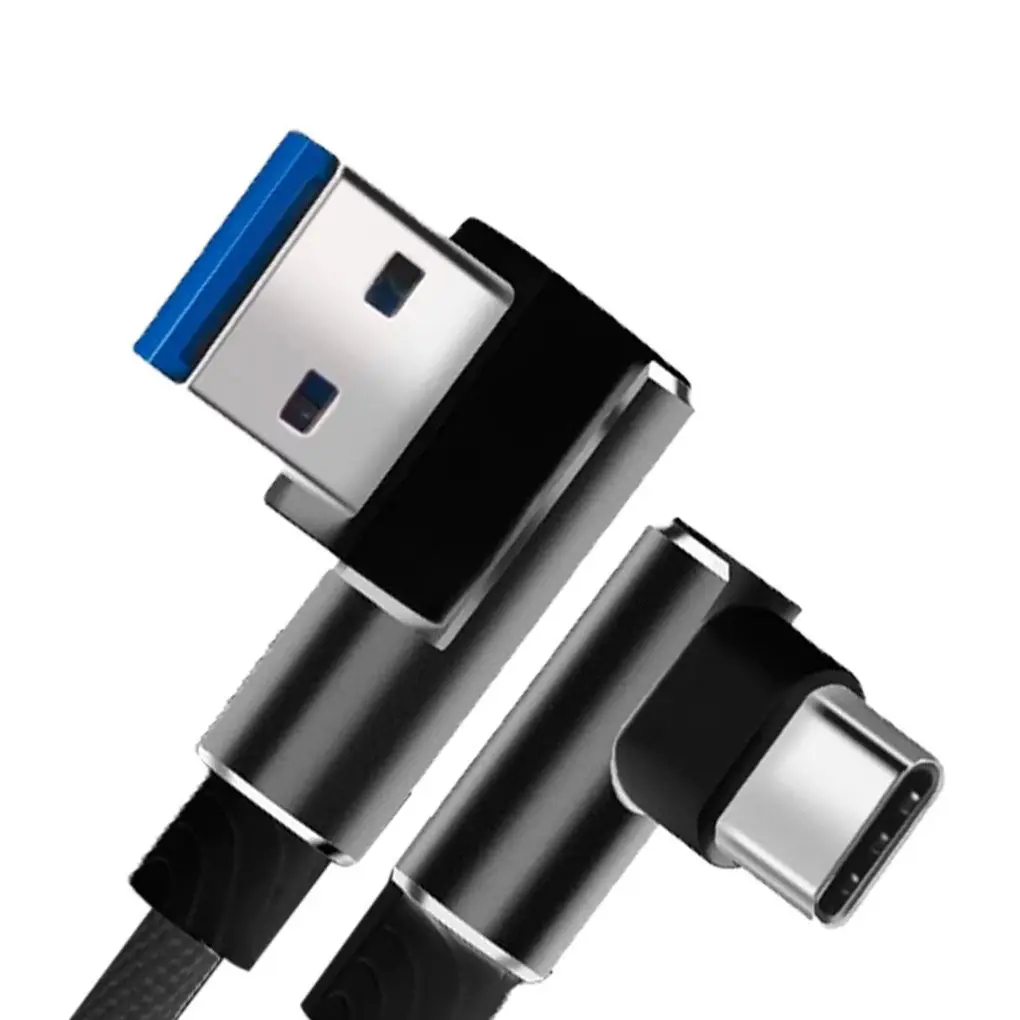 Comprar Cable de datos de teléfono tipo C de 1, 2 y 3 metros, Cable de línea de carga de doble codo, corriente 2 A, 90 grados