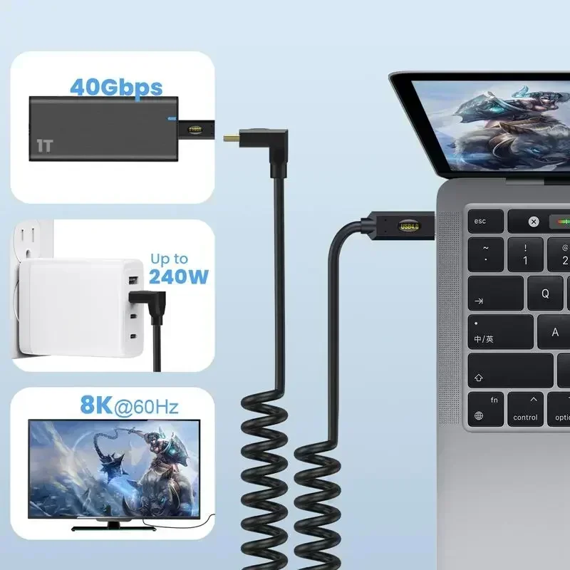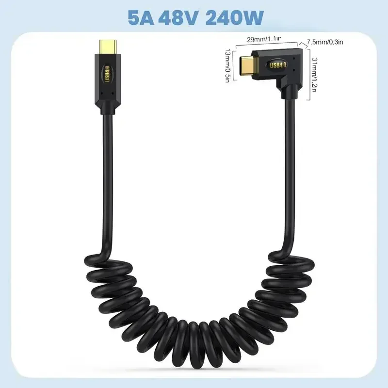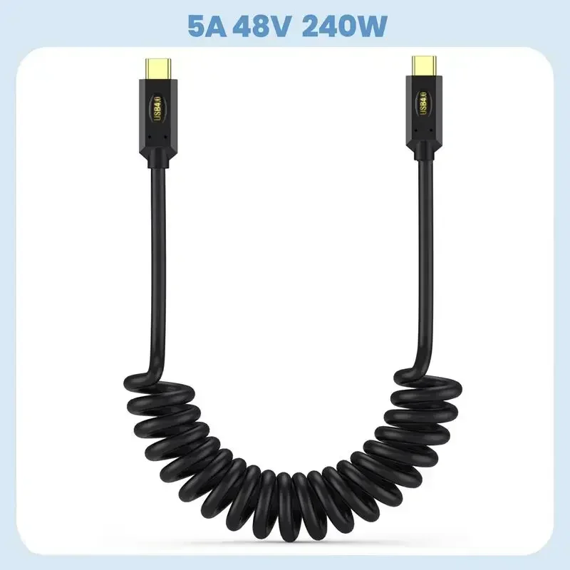 Primavera retráctil USB4 cabeza dual Tipo-c 240W (48V/5A) línea de datos 8K60HZ portátil relámpago 40Gbps transmisión de alta velocidad coaxial línea PD 1,2 metros;