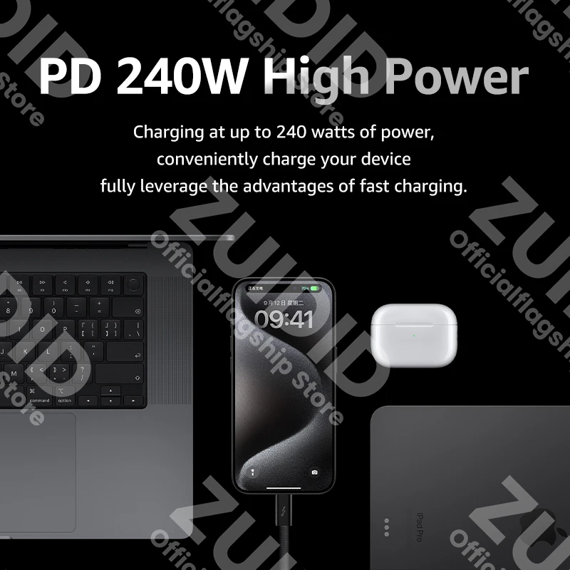 【Salida de alta potencia】El cable ThunderBolt 4 de 240W compatible con los protocolos de carga rápida PD3.1/QC4.0/PD3.0/2,0, este cable de carga rápida USB C puede satisfacer plenamente las necesidades de carga rápida.