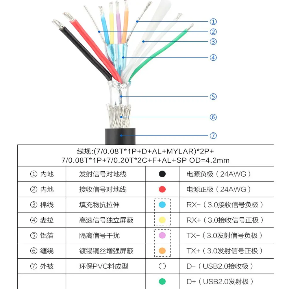 2.Todos los núcleos de los cables están hechos de cobre estañado y libre de oxígeno de alta calidad, lo que aumenta la superficie de transmisión de la señal, resiste la oxidación y tiene una vida útil 50 veces más larga que la de los productos normales.