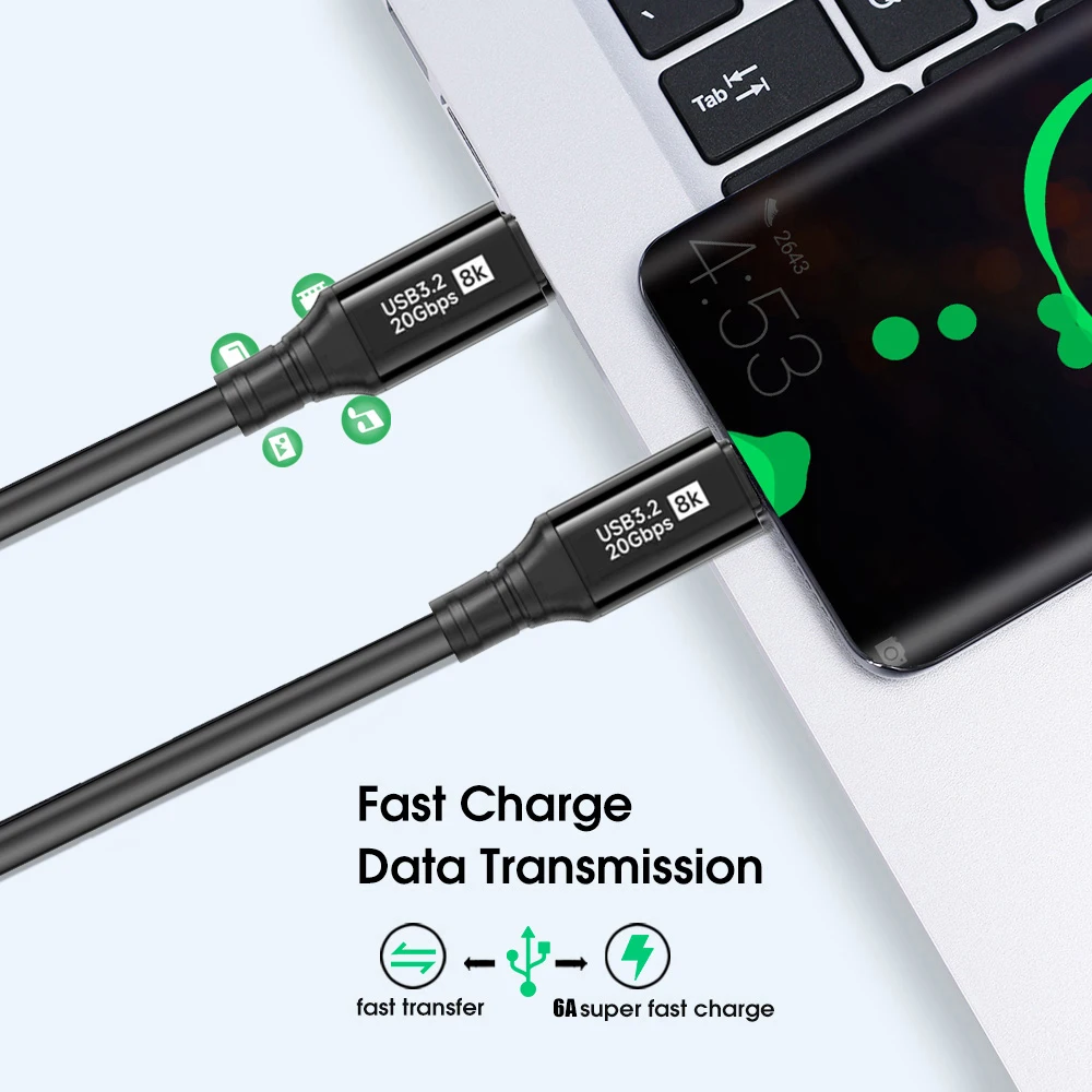【Carga rápida y transmisión de datos】: este cable de datos tiene una capacidad de carga de 100 W, que puede cargarse de manera rápida y eficiente.Además, también admite transmisión de datos de vídeo 8K, lo cual es muy adecuado para medios de alta resolución y transferencia de archivos grandes.
