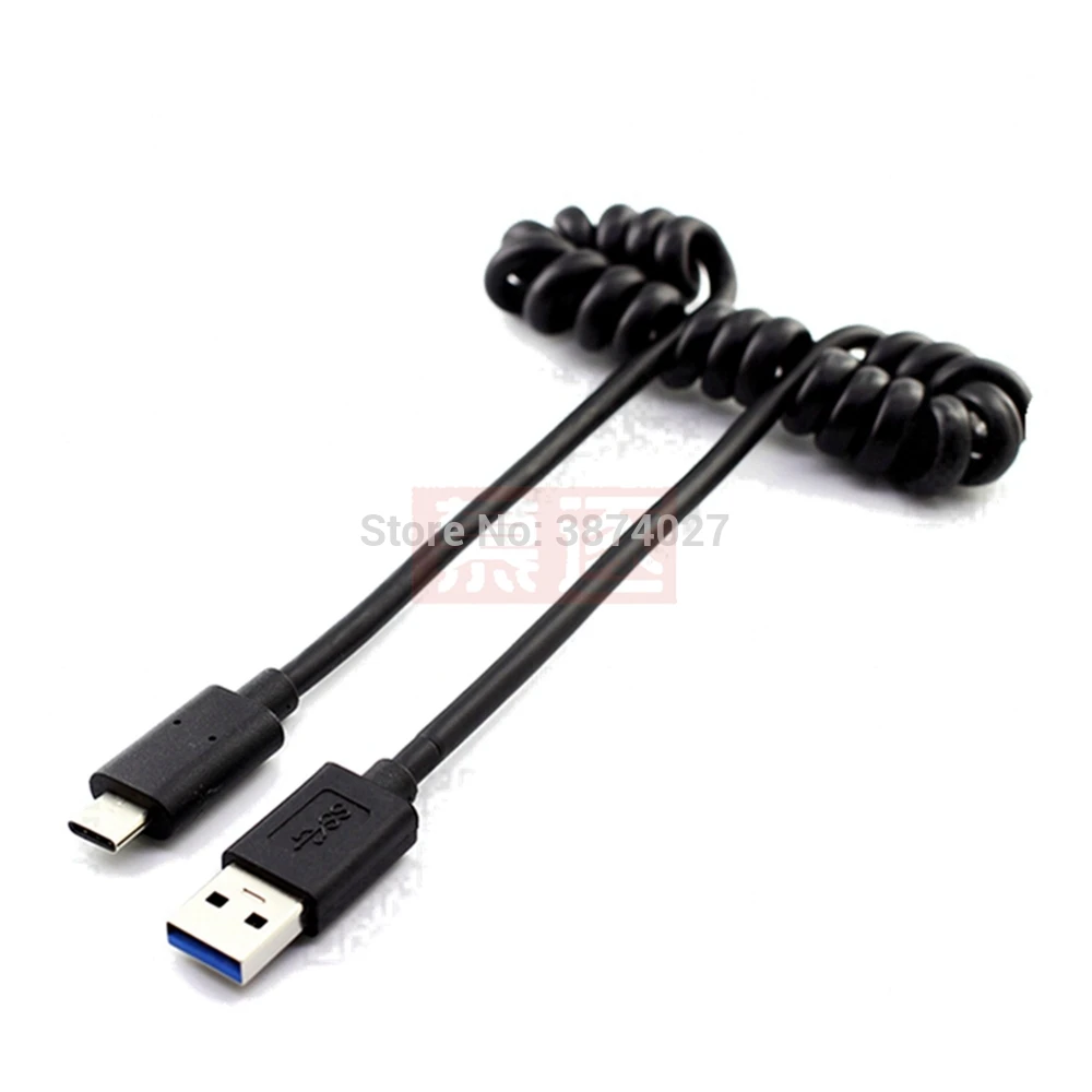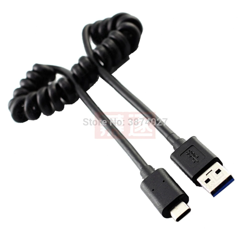USB-C 3,1 tipo C macho A USB 3,0 estándar A Cable de datos macho Cable elástico Para tableta y teléfono móvil Longitud: 100cm El conector tipo C es el nuevo diseño para USB 3,1 Diseño Reversible para conector tipo C Orientación Reversible del enchufe y dirección del Cable Soporta carga de energía escalable Para tableta, teléfono móvil y disco duro