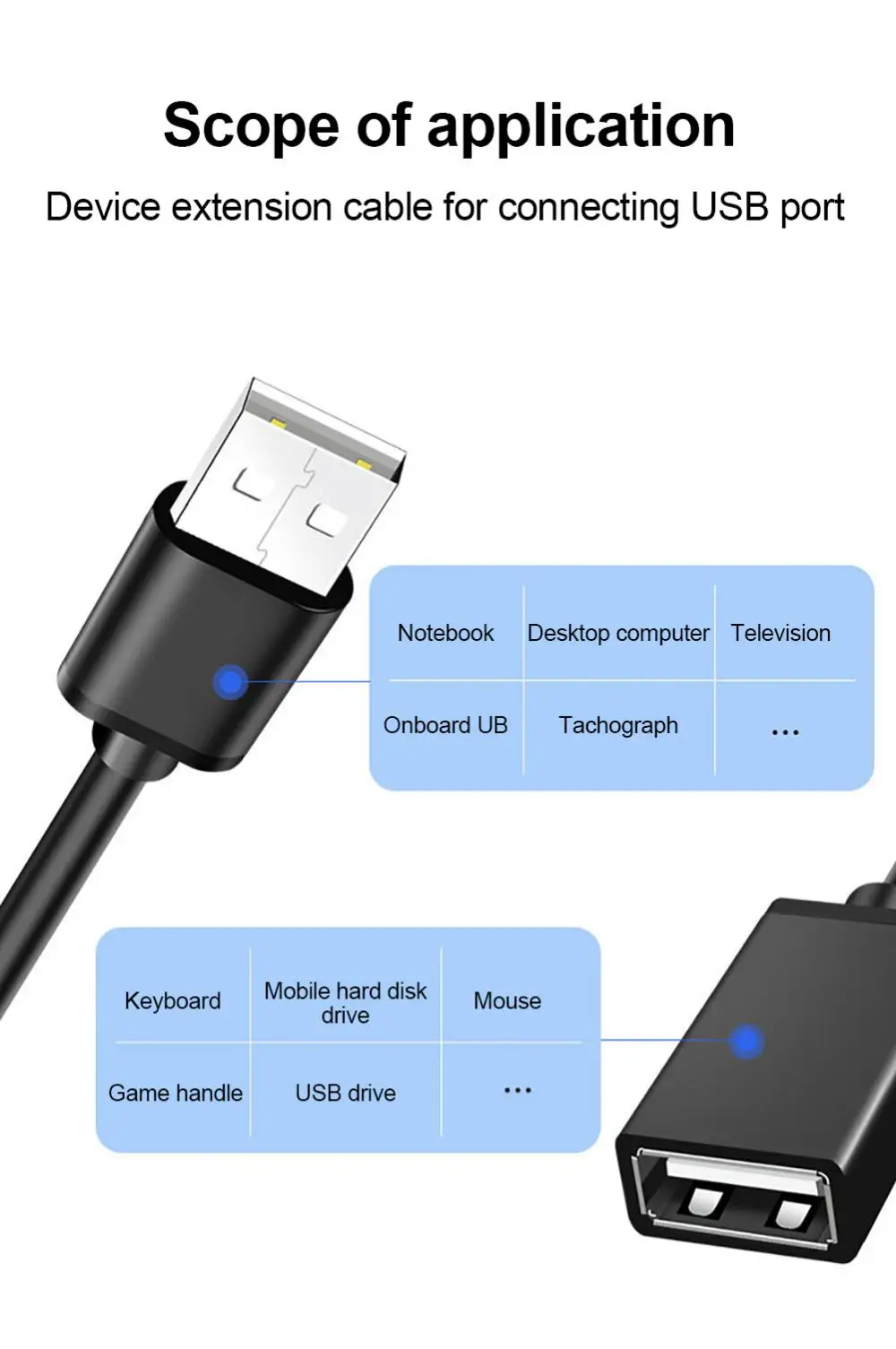 Comprar Cable de datos Universal para ratón de ordenador, extensión duradera, antibobinado, macho y hembra