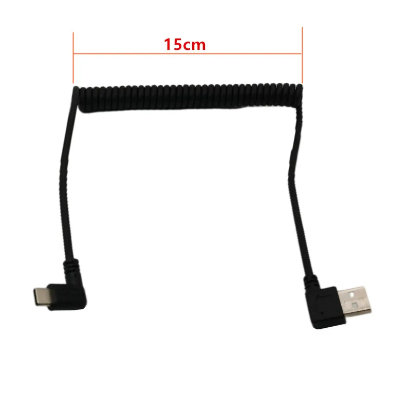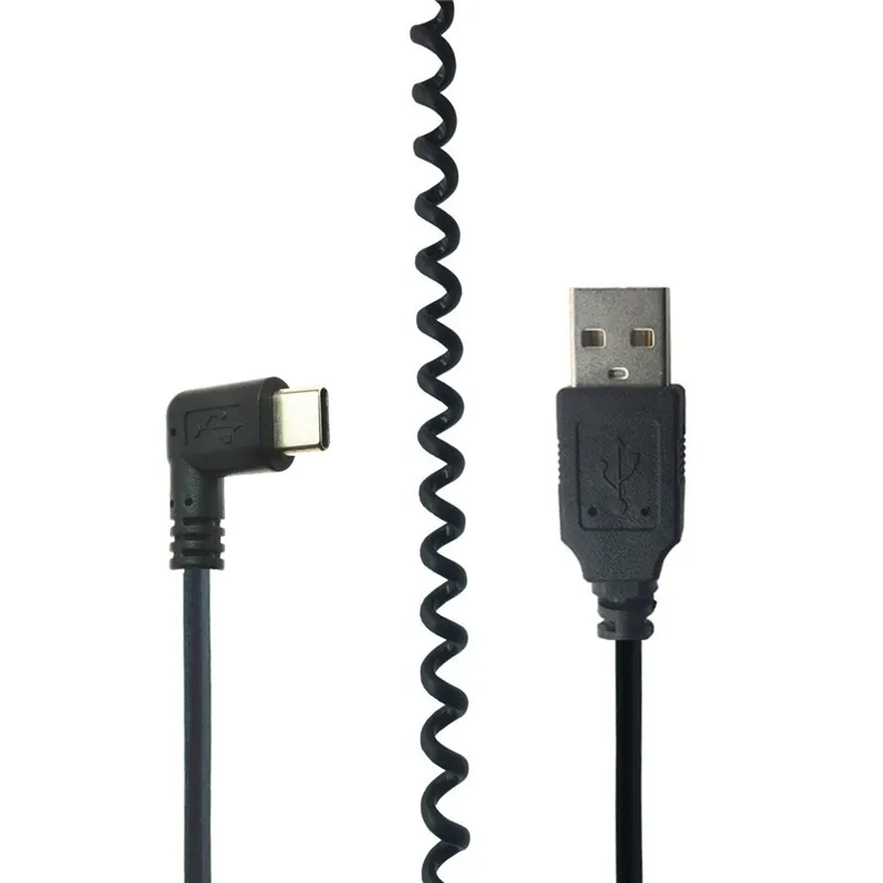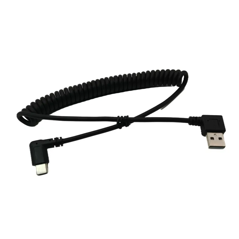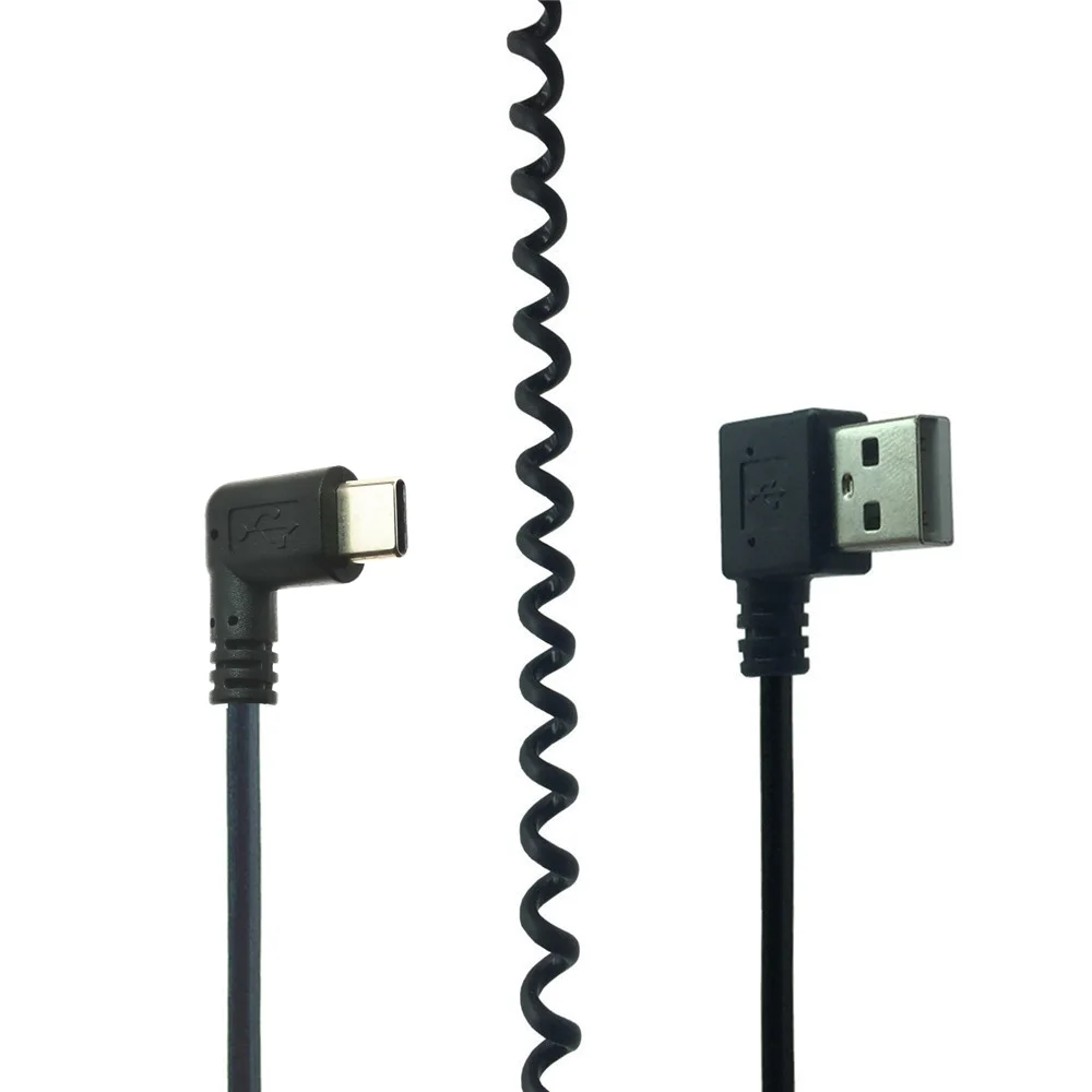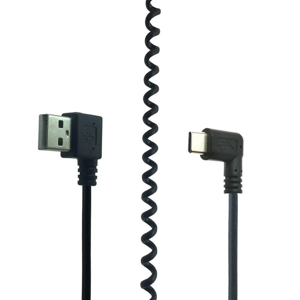 Comprar Cable de datos USB 0,5 tipo c tipo C A ángulo recto, Cable de datos de resorte macho, 1,3 m-3,1 m, USB-C elástico