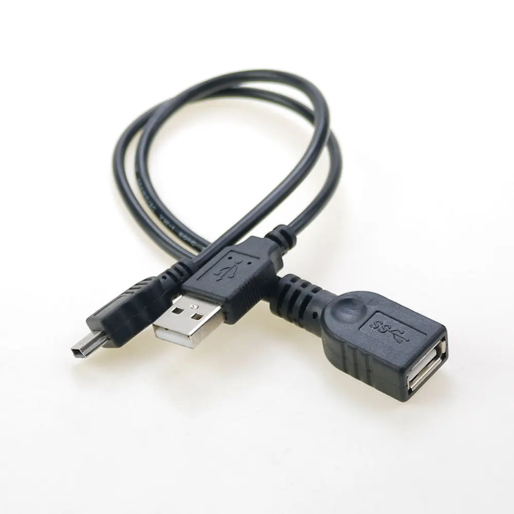 Cable DE DATOS USB 1/2 USB 2,0 hembra a USB macho Mini cable adaptador de carga de Puerto T macho de 5 pines Y Splitter