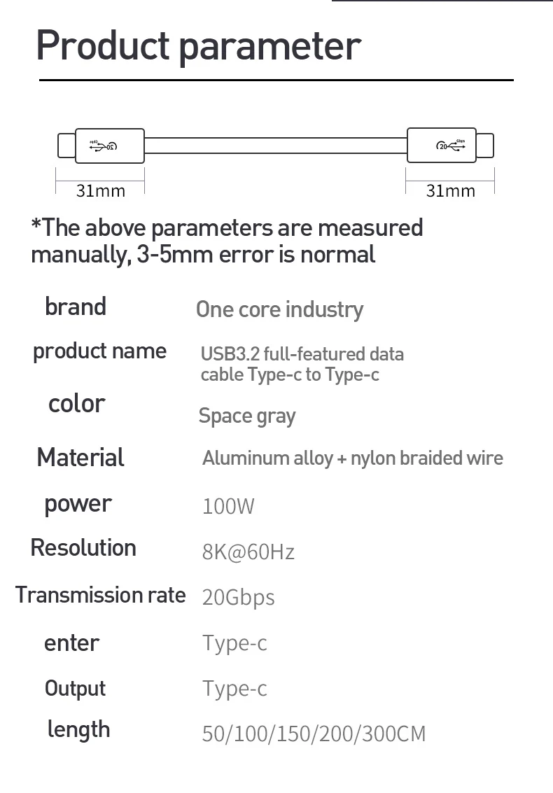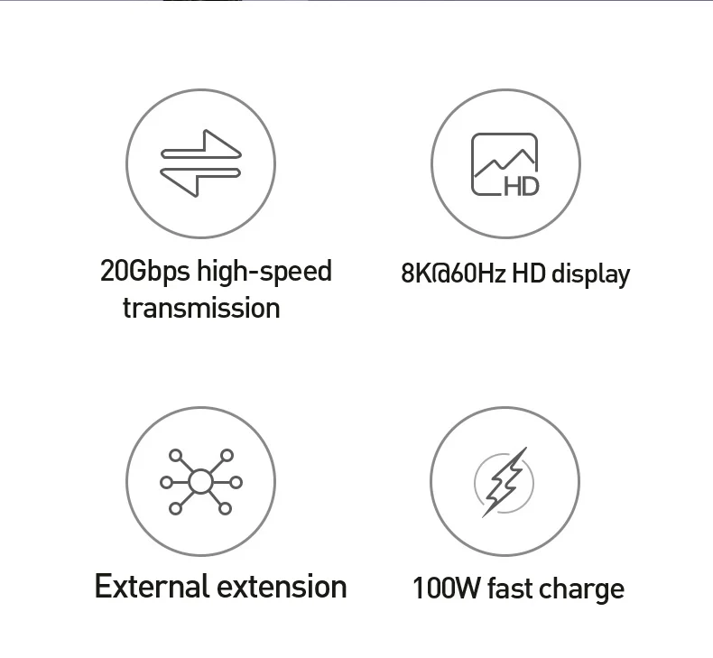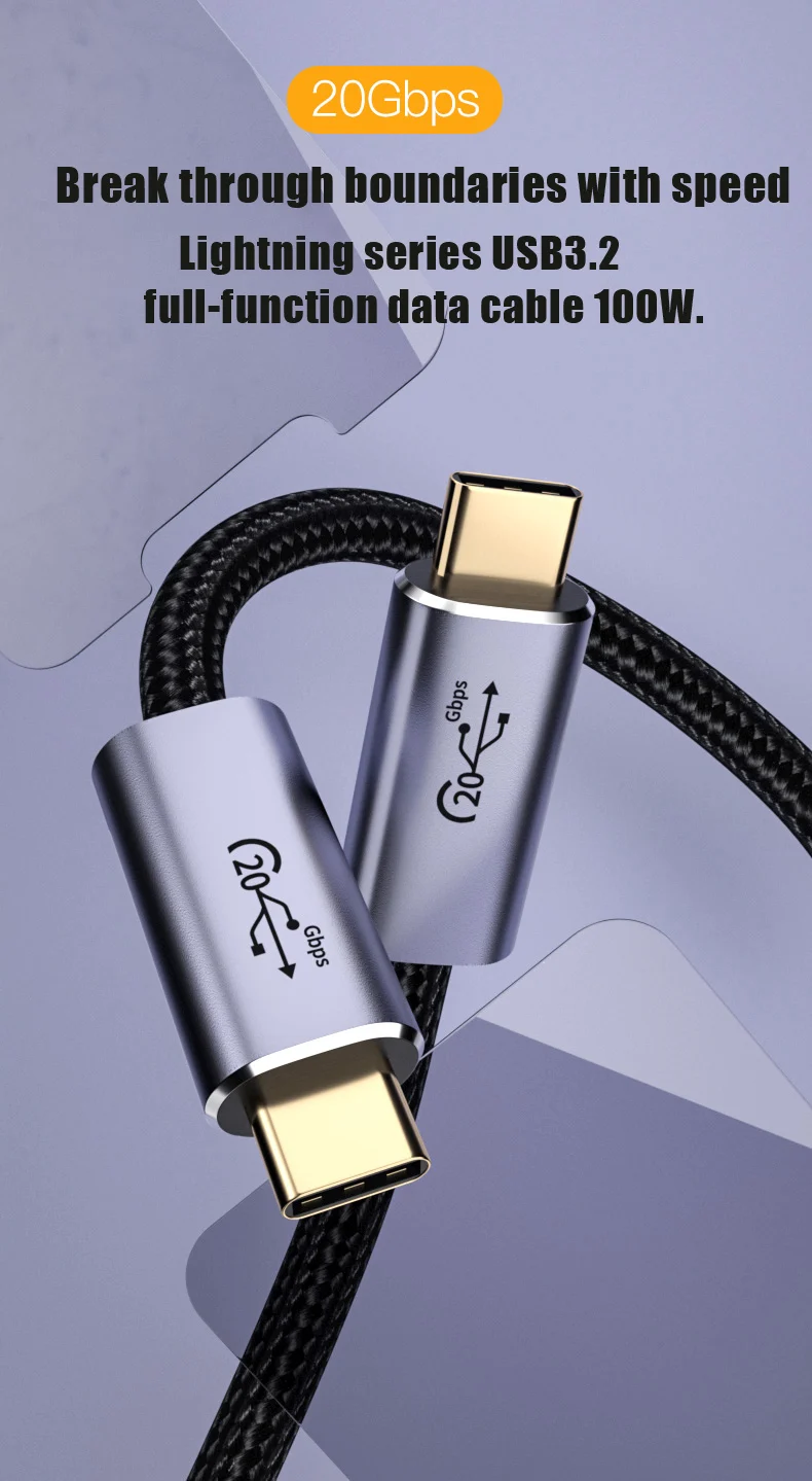 Función (usb3.2): Transmisión de Datos + señal de vídeo + carga de 100 vatios + señal de audio (compatible hacia abajo con Tb3, usb3.2, usb3.1 y otros protocolos)