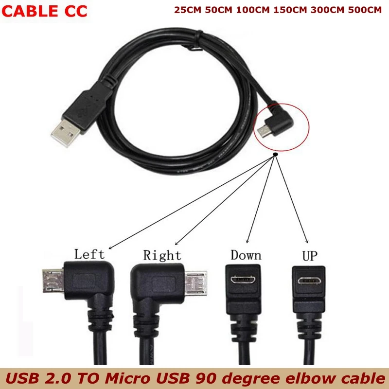 Comprar Cable de datos USB 2,0 a Micro USB, Cable de carga de codo de 90 grados para teléfono móvil, carga de coche, MP3, Mp4, Micro arriba, abajo, izquierda y derecha