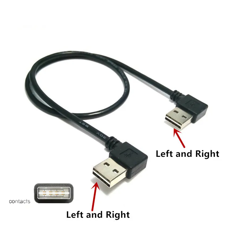 Comprar Cable de datos USB 2,0 con ángulo recto de 90 grados, macho a macho, izquierda, macho, 1m, negro, 25cm, 50cm, 100cm