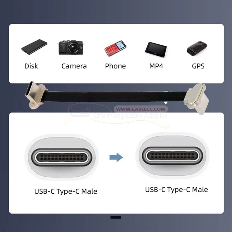 Cable DE DATOS USB2.0 de alimentación plana ultradelgada tipo C a tipo C en ángulo, carga rápida de 65W para teléfono portátil y tableta