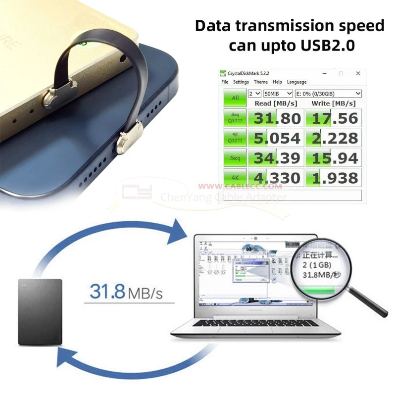 Alta velocidad de hasta 480Mbps para USB tipo C versión 2,0, admite transmisión de datos bidireccional al mismo tiempo.