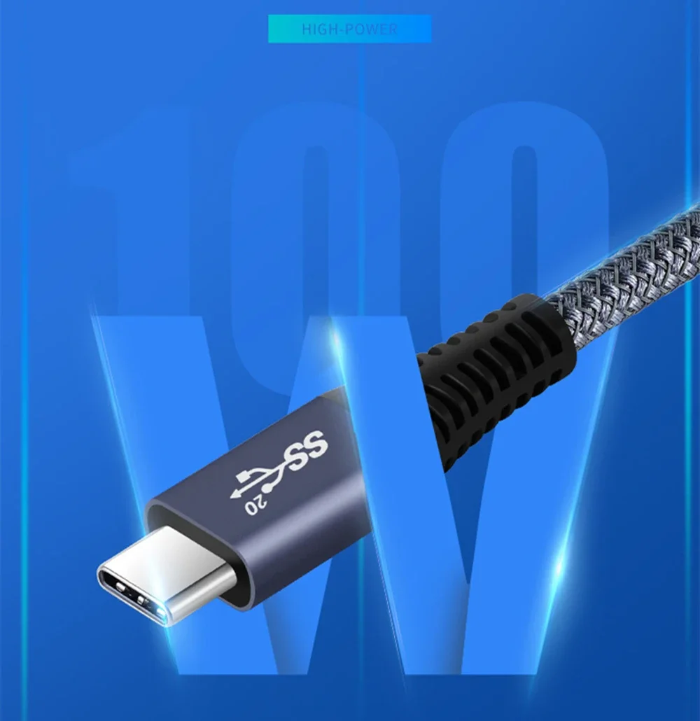 2. PD 100W & 20Gbps Data Transfer. The USB C to USB C Cable build-in E-marker smart chip can safely deliver up to PD 100W (20V/5A) of power. Supports SuperSpeed transfer rates up to 20 Gbps, Send or receive an HD movie in seconds.