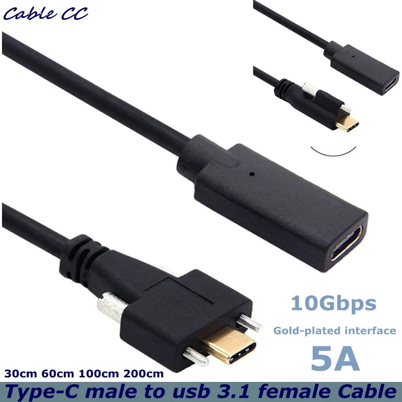 60Hz chapado en oro 4K 16 Core 5A USB3.1 Tipo-C macho a hembra con tornillo de fijación 10Gpbs cable de datos Adecuado para interfaz USB3.1 tipo C teléfono móvil computadora portátil cargador de disco duro móvil, etc., compatibilidad del producto: Interfaz USB3.1 tipo C USB3.1 USB3.0 USB2.0 totalmente compatible;
