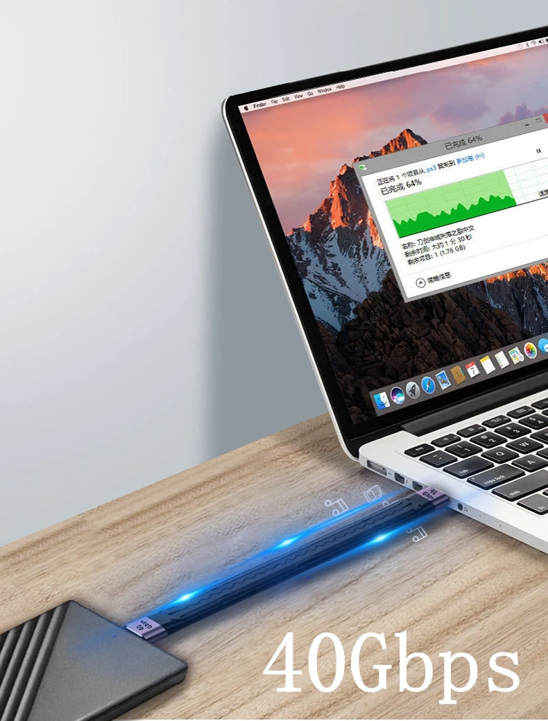 Cable de datos USB 4.0 Gen3 40Gbps Thunderbolt 3 PD 100W 5A Cable de carga rápida USB C a tipo C Cable 4K@60Hz Cable USB tipo C Cable de datos