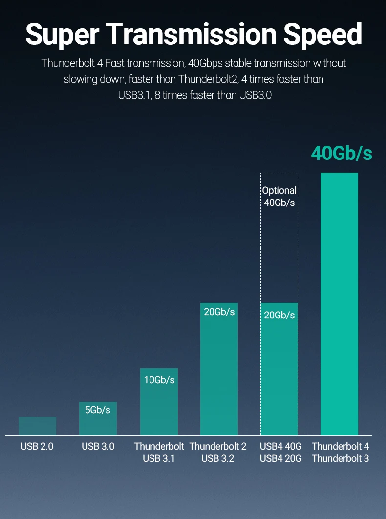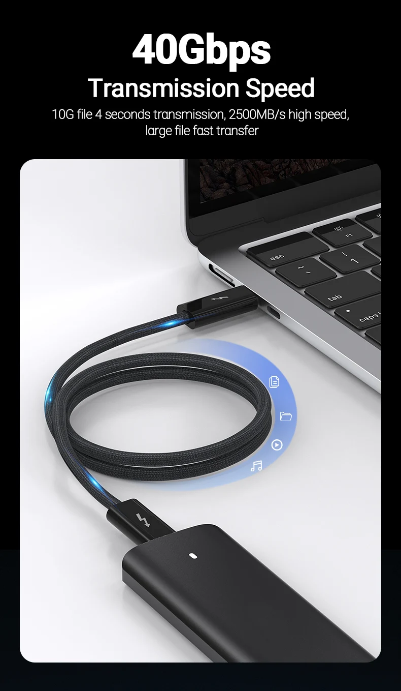 • Velocidad de 40Gbps:Disfrute de la transferencia de datos de alta velocidad con una velocidad de 40Gbps.