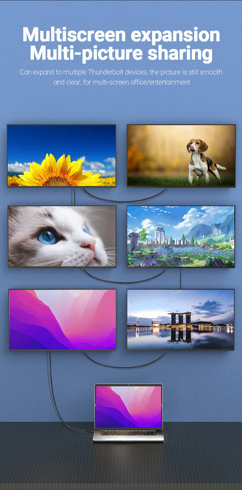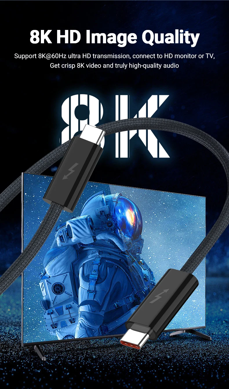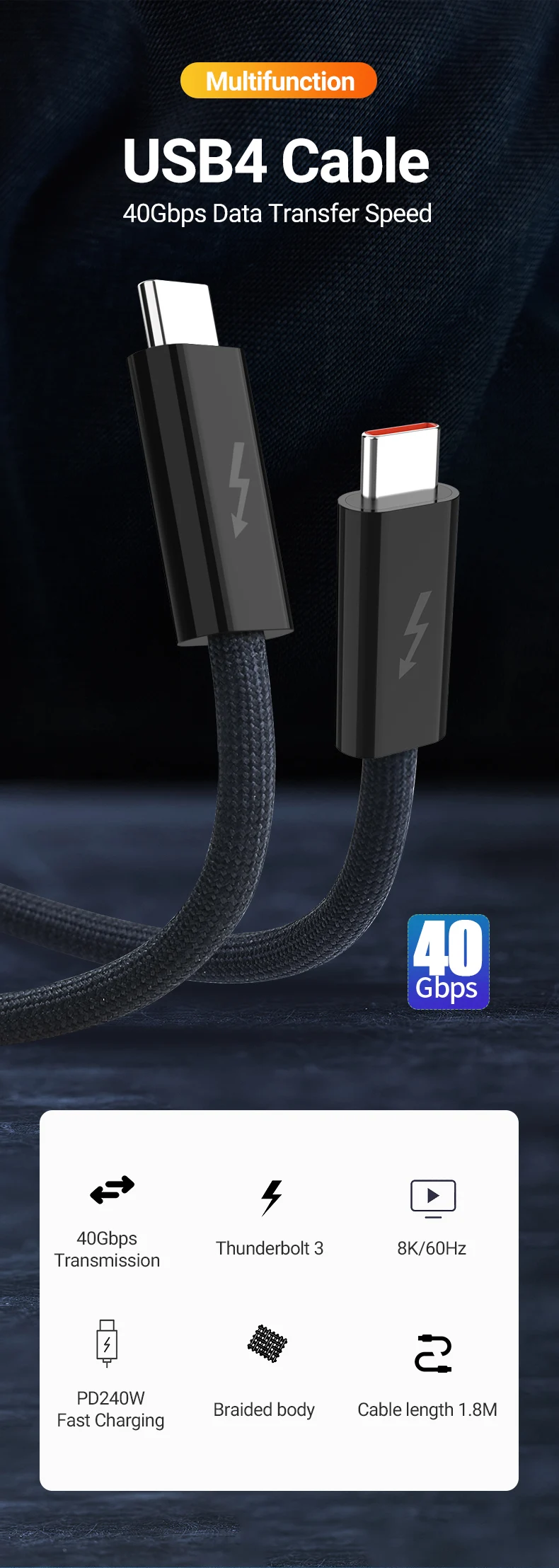 La salida de vídeo multifuncional de la ayuda 8K 60Hz del cable de datos del USB 4,0, la carga rápida del paladio 240W y los datos de alta velocidad 40Gbps transimission. Usted sólo necesita tomar un cable puede satisfacer sus necesidades de trabajo y entretenimiento.