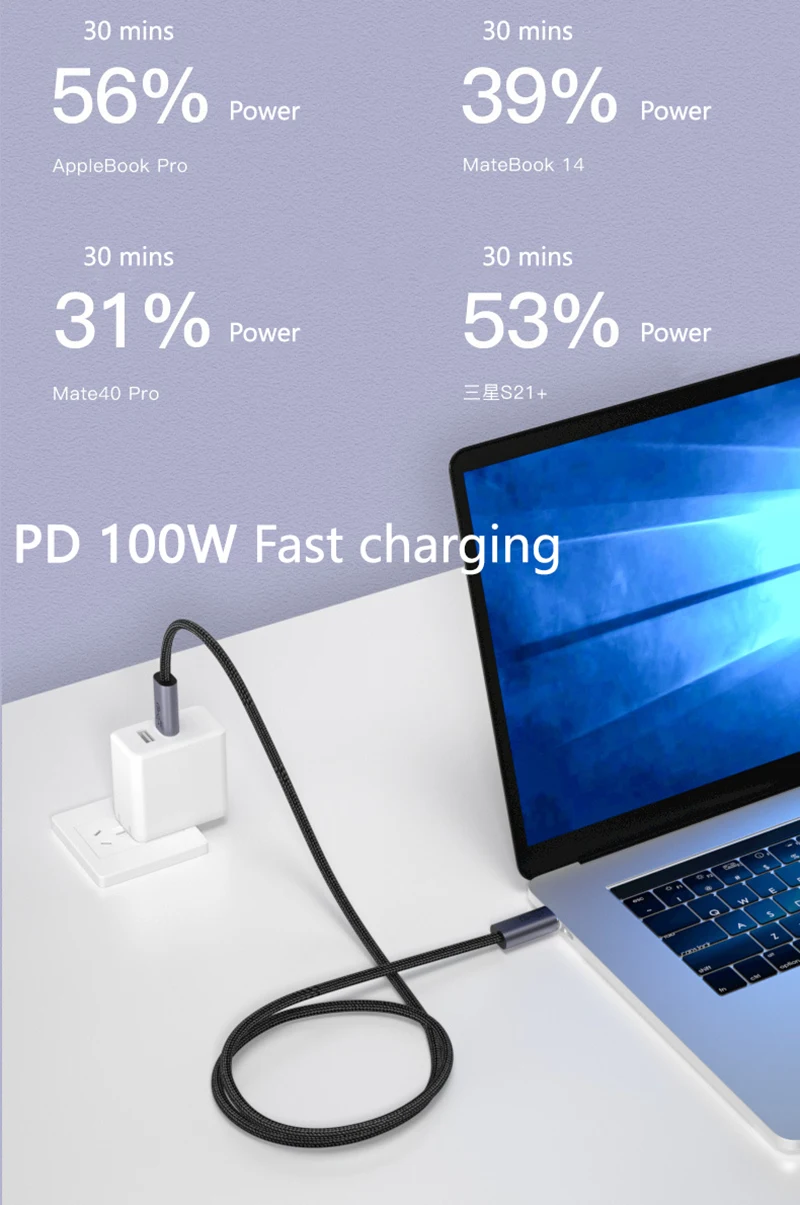 -Carga rápida PD de 100W Utilice el cargador original o compre un cargador con más de 100W de potencia, de lo contrario el cable no podrá reproducir el mejor rendimiento