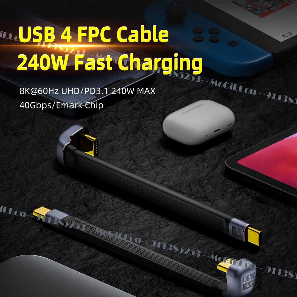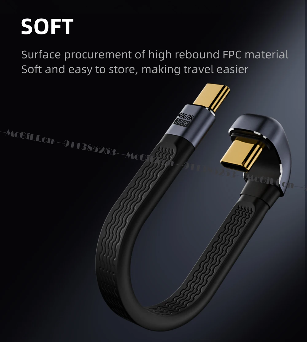 Comprar Cable de datos USB 4,0 de 40Gbps con codo en forma de U PD 240W 5A Cable de carga rápida USB C a tipo C Cable Thunderbolt 4 8K @ 60Hz Cable tipo C