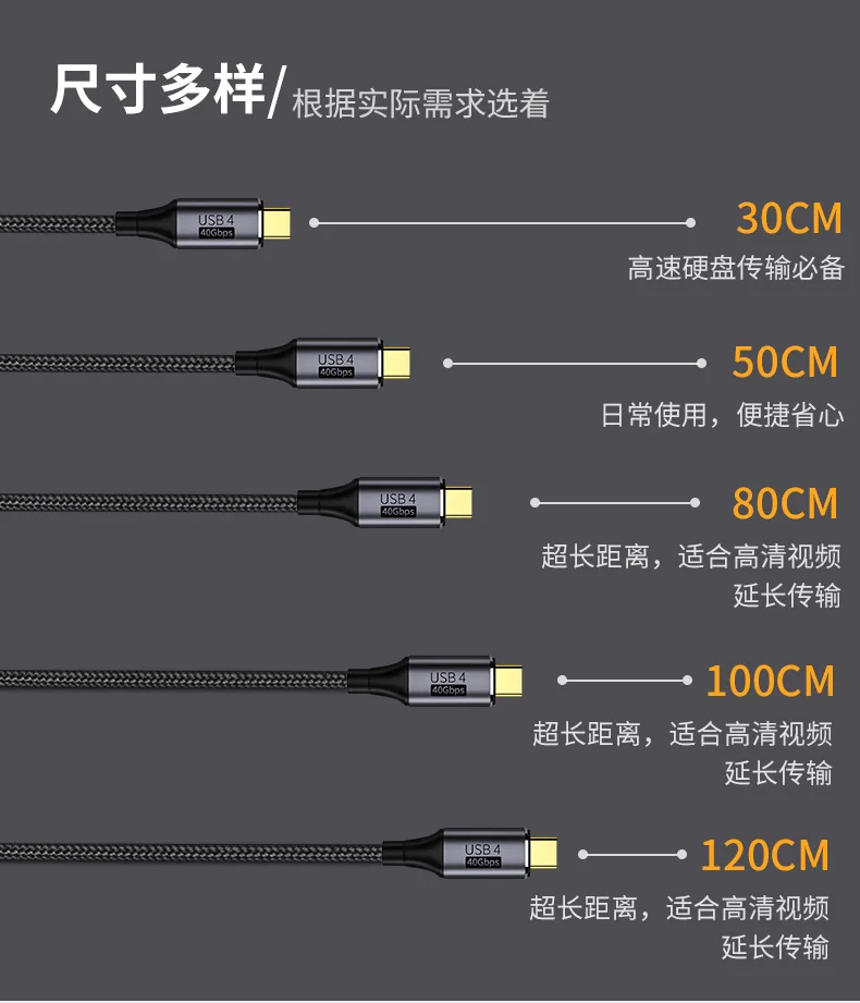 Cable DE DATOS USB4.0 Thunderbolt 3 20/40Gbps PD 100W 5A carga rápida USB tipo C a tipo C 8K @ 60Hz Cable para Macbook Pro 1m