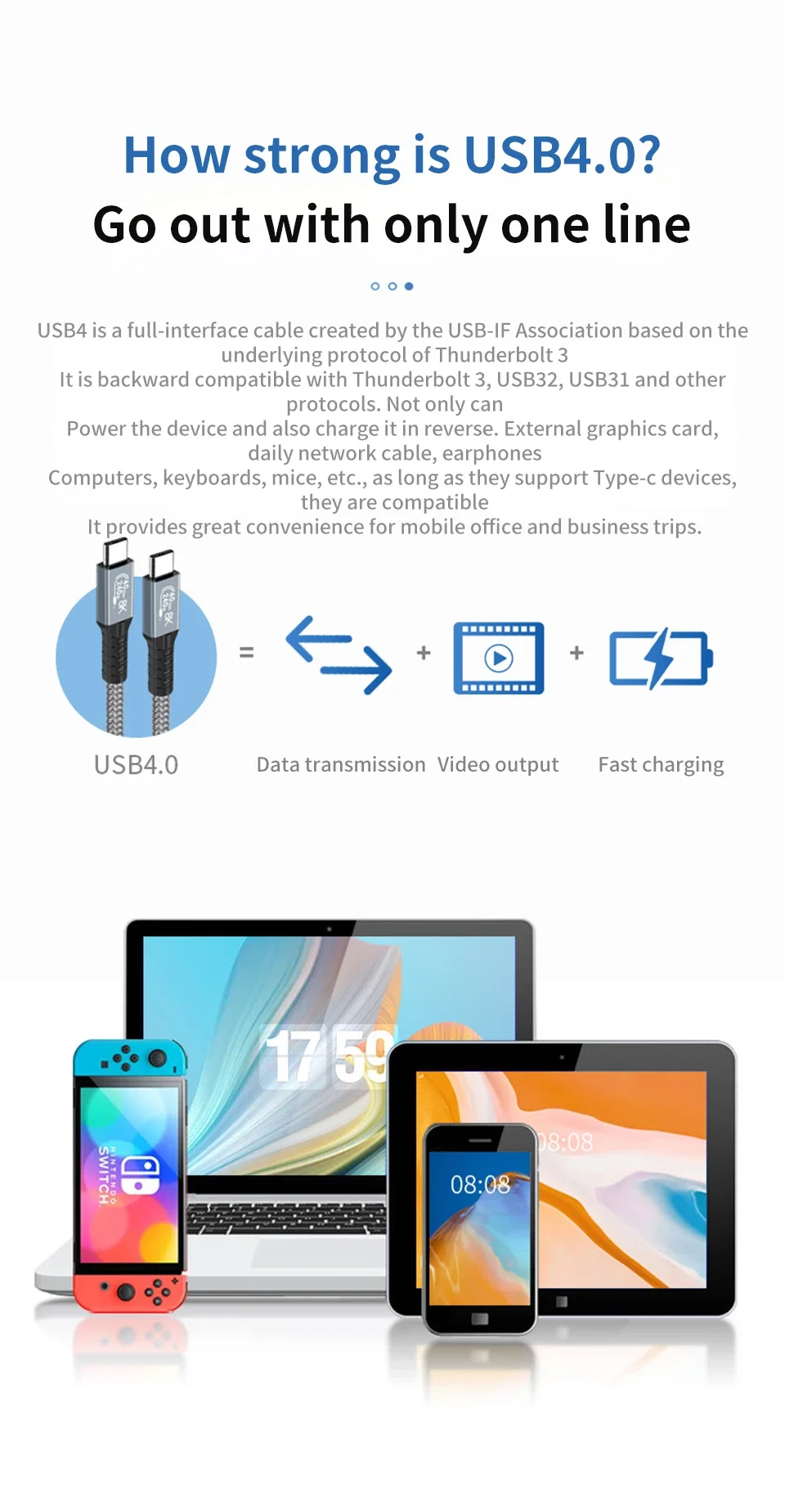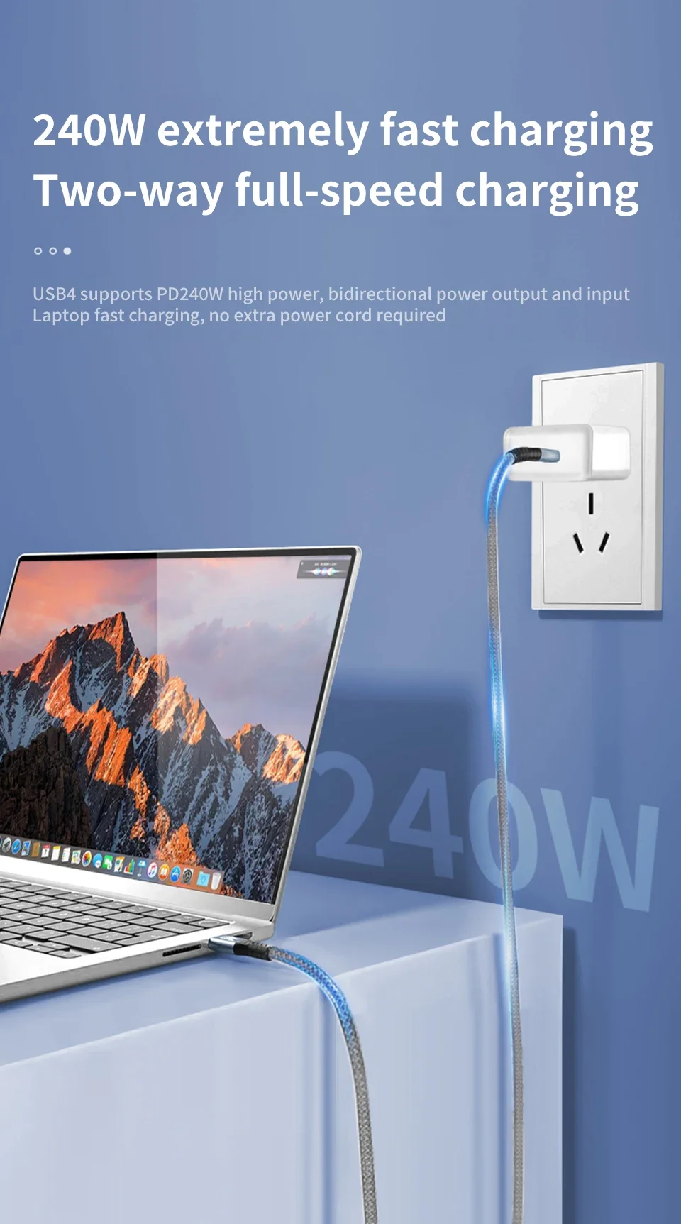 Entrega de potencia de 240W: Cable Hagibis USB 4 Compatibilidad de carga de hasta 240W, carga rápida para todos los dispositivos como teléfonos móviles, ordenadores, iPads, interruptores, etc.