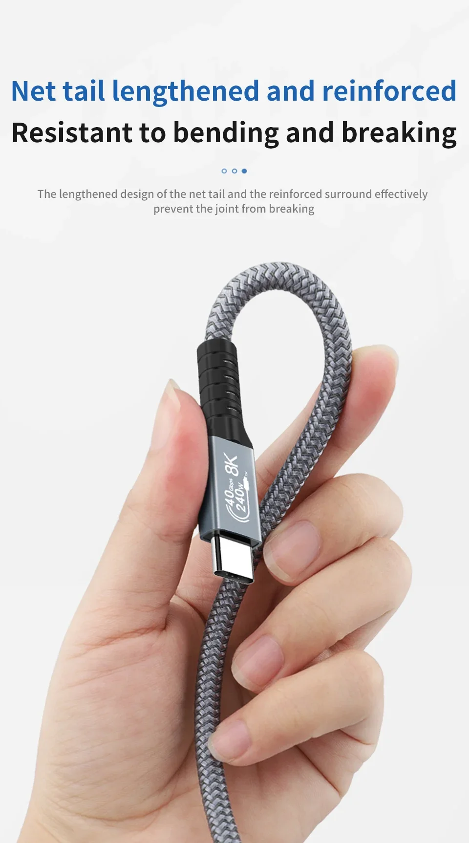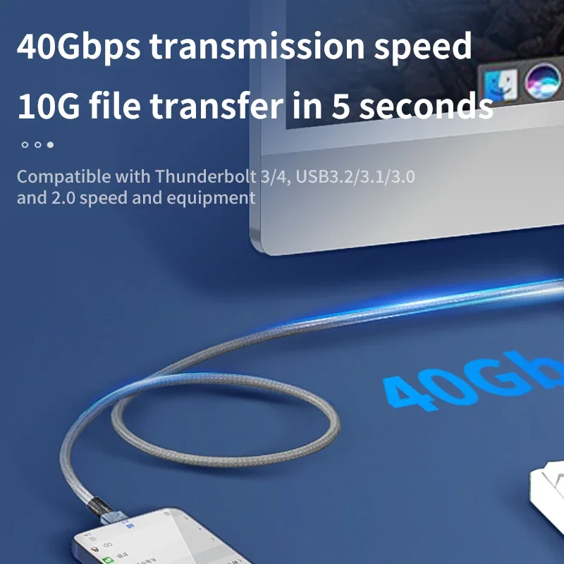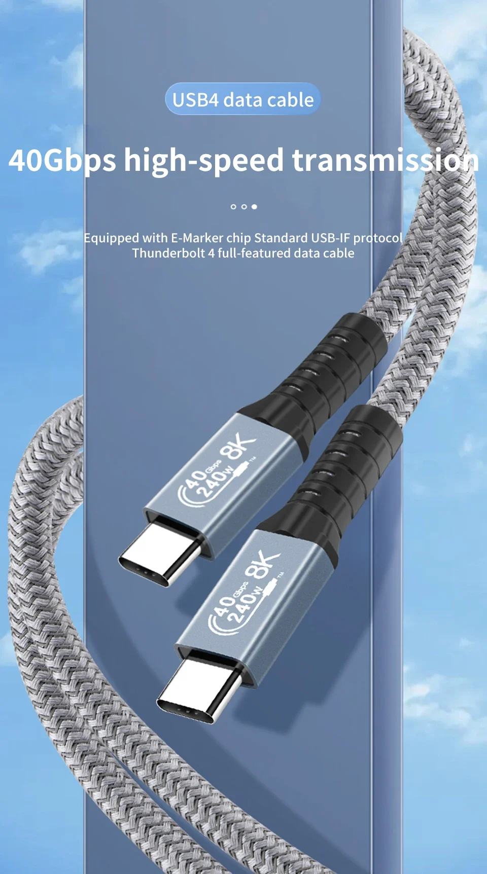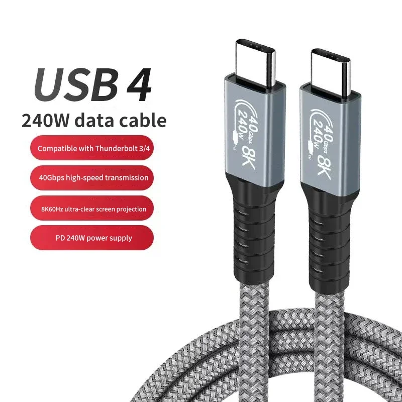 Comprar Cable de datos USB 4,0 tipo C para PS5 Switch MacBook, Cable Thunderbolt 3 PD 240W 5A de carga rápida USB C a tyep-c 8K 4K 60Hz