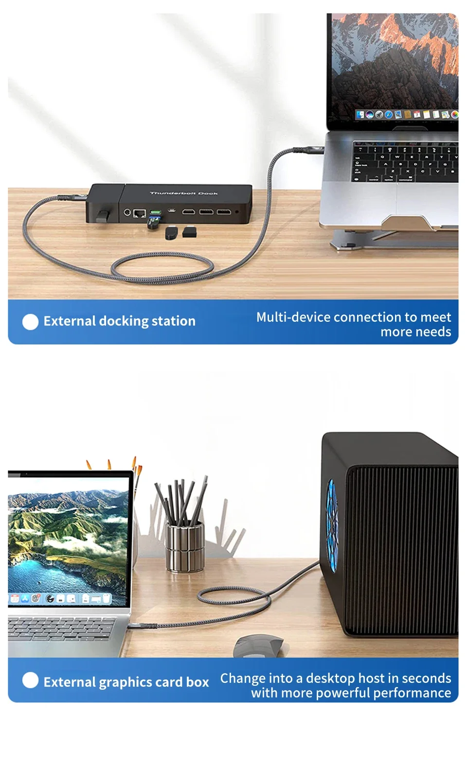 Amplia compatibilidad: el cable Hagibis tipo C es compatible con Thunderbolt 3 , USB 3,1, Gen 1, 2 y Gen DisplayPort Alt Mode. Compatible con su Apple Mac habilitado para USB 4 (MacBook Pro de finales de 2016 y modelos más nuevos, iPad Pro 2021, MacBook Air 2018 e iMac de finales de 2017, 2018,2021) Y PC USB 4 con Windows como las series Dell XPS, HP Spectre y Lenovo Carbon X1 y otras estaciones de acoplamiento Thunderbolt 3, almacenamiento y