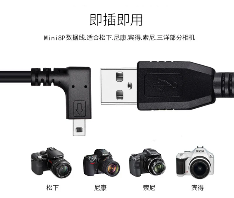 Comprar Cable de datos USB de 90 grados, para cámara, fotos, sincronización de vídeo, 8 pines, para Nikon, Olympus, Pentax, Sony, Panasonic, Sanyo