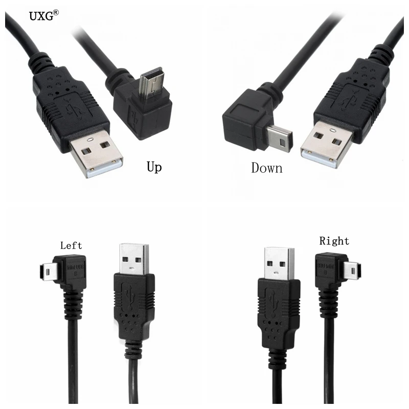 Comprar Cable de datos USB A macho A Mini USB B, 5 pines macho, 90 grados arriba abajo, adaptador de ángulo izquierdo y derecho, Cable de sincronización de carga de 0,25 M, 1,5 M, 3M, 5m, 8m