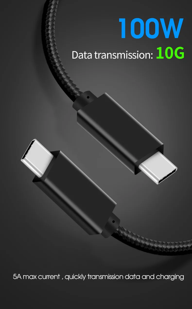 Cable de datos USB-C a USB-C PD 100W cargador rápido doble tipo C Cables USB macho a macho para portátil de disco duro móvil tipo C