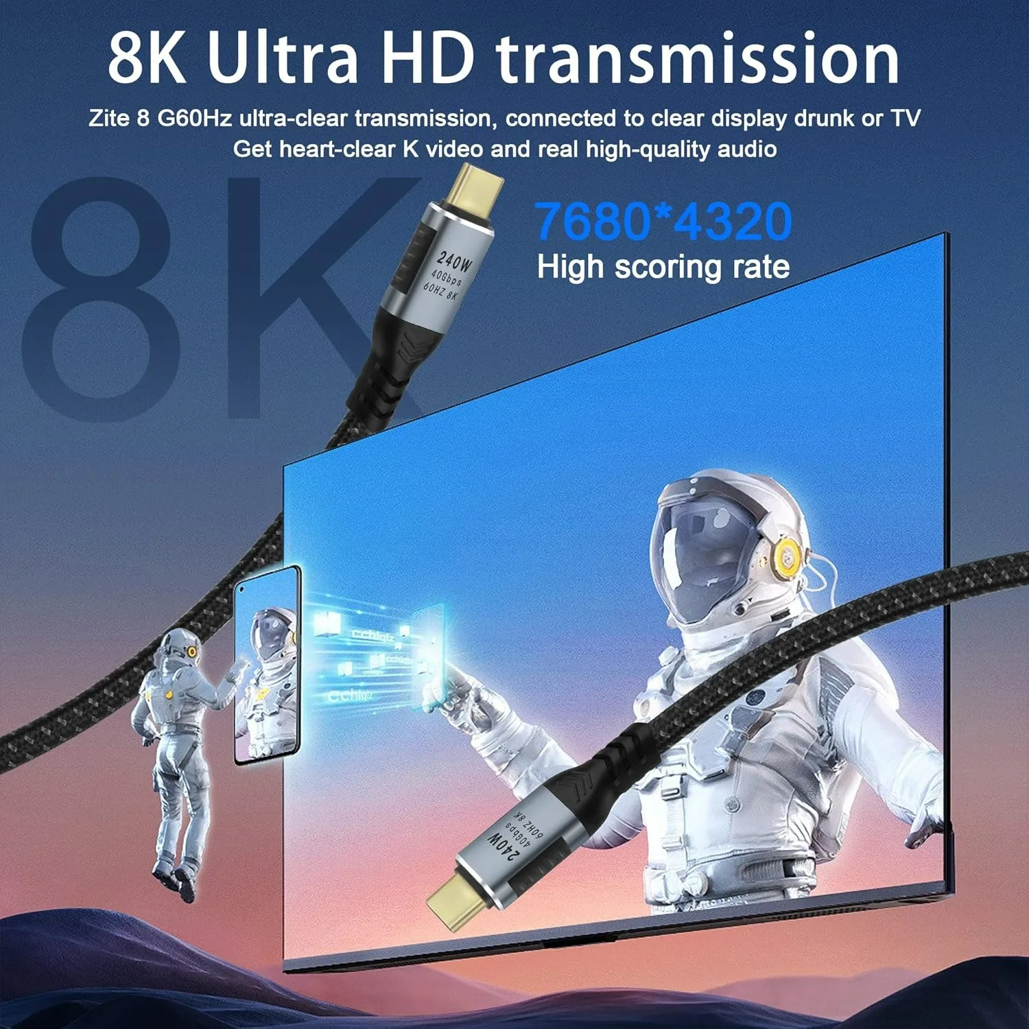 Sincronización de datos de 40 Gbps: transferencia rápida de archivos Transferencia de cable de 40 Gbps Archivo de 5 GB en un segundo.Sincronización de datos de hasta 40 Gbps, le permite transferir videos, películas, música e imágenes HD en un segundo, lo que hace que la transferencia de archivos sea más fácil y rápida que antes.(NOTA: Esto solo se aplica a dispositivos que admitan 40 Gbps)