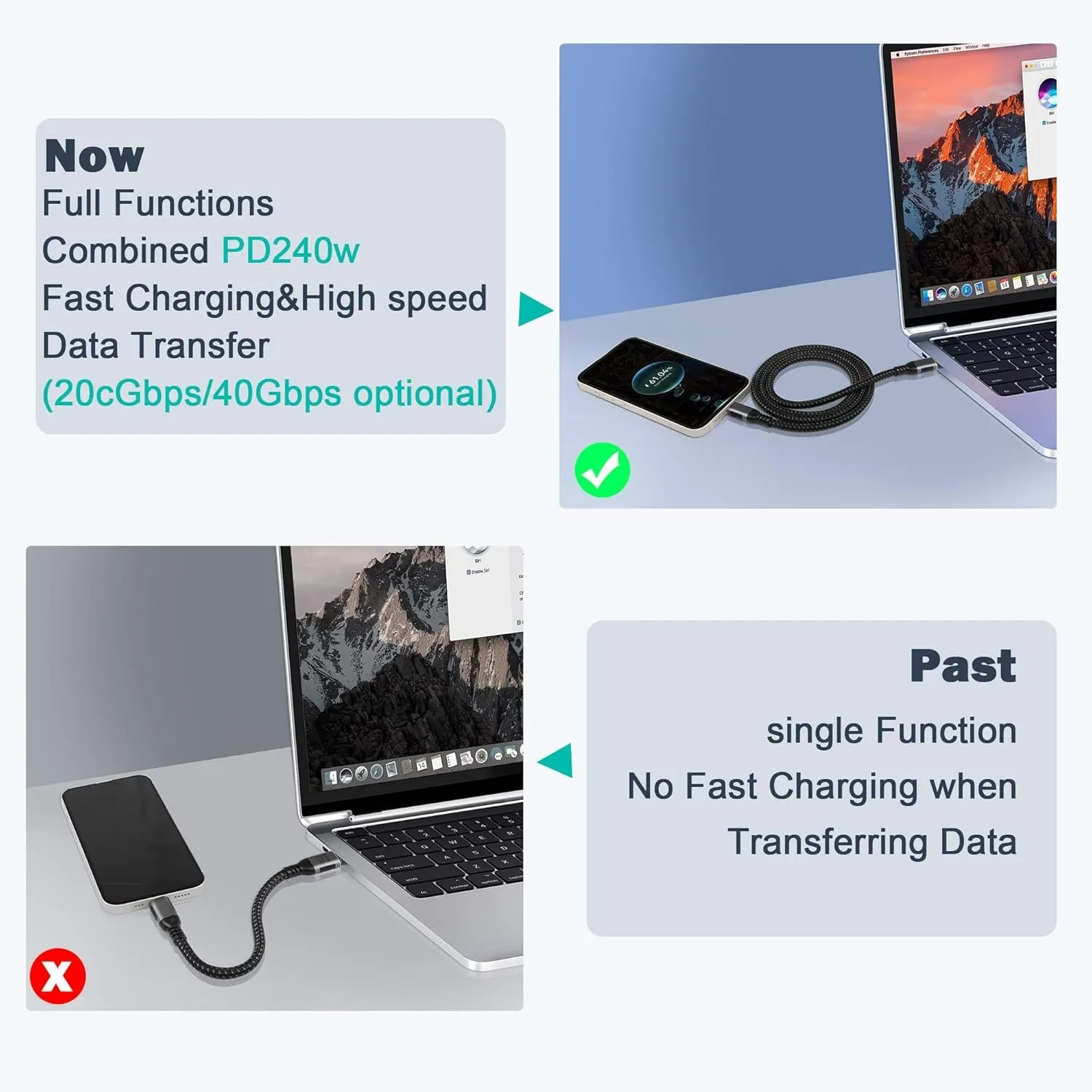 Carga de 240 W: tecnología de carga de próxima generación Con el último estándar USB4, admite carga rápida de hasta 240 W (48 V 5 A) cuando se combina con un cable y un cargador compatibles.Compatible con versiones anteriores de dispositivos de alimentación de 200/140/100/60/18 w.Cargue prácticamente cualquier dispositivo USB-C, desde teléfonos y accesorios hasta computadoras portátiles para juegos.