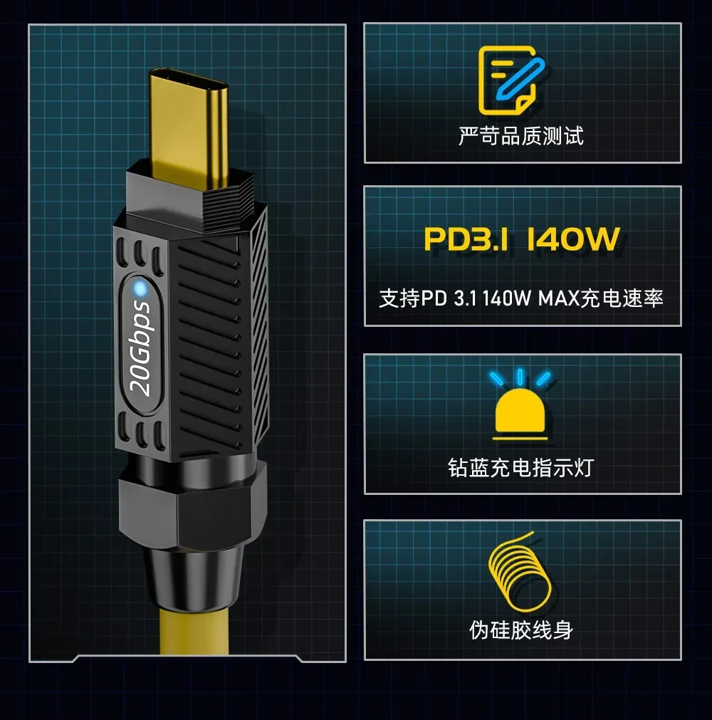 Función: carga de 140 W + transmisión de datos de 20 Gbps + proyección de pantalla de 8 K a 60 Hz