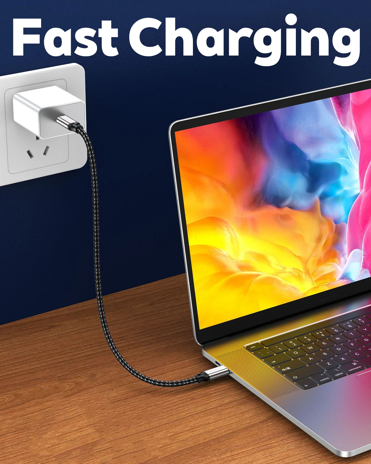 3. Hasta 100 W 20 V a 5 A Paso a través de la fuente de alimentación compatible, comparable al cable original de velocidad completa (la velocidad de carga real depende de su dispositivo y cargador de pared, con un cargador original de 96 W a un cargador original de 96 W, con un cargador original de 45 W a un máximo de 45 W).
