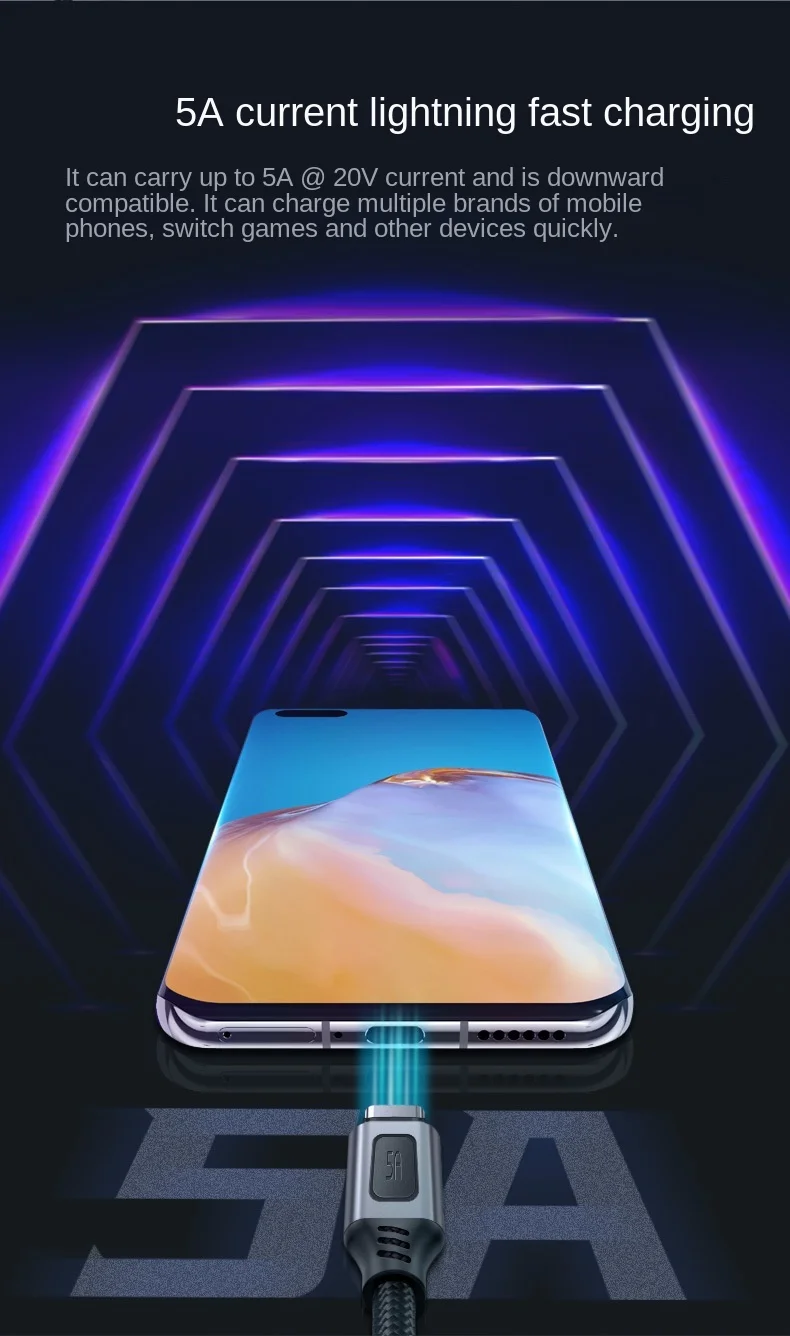 Comprar Cable de datos USB tipo C 5A, 100W, PD, carga rápida para Macbook Pro, Samsung S10 Note