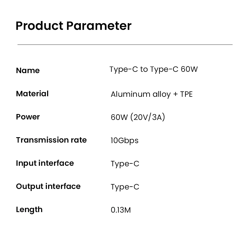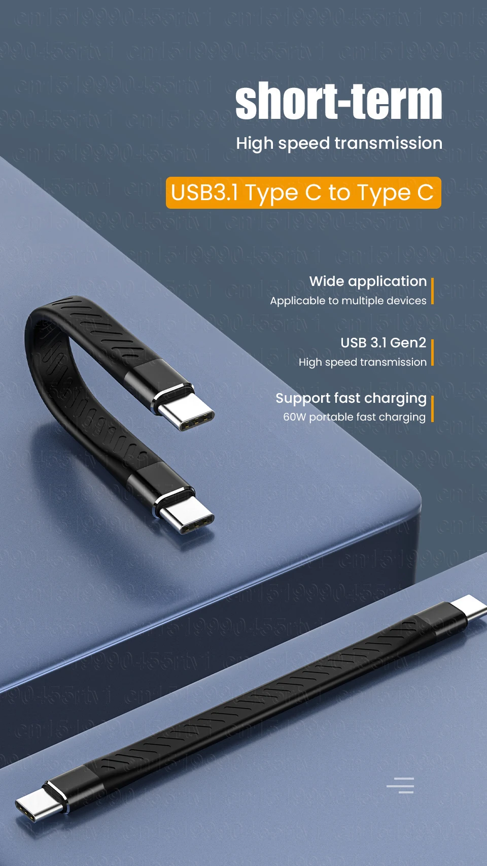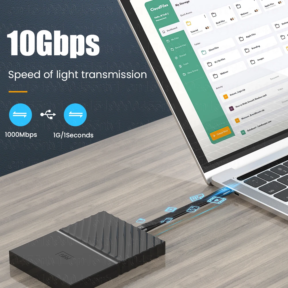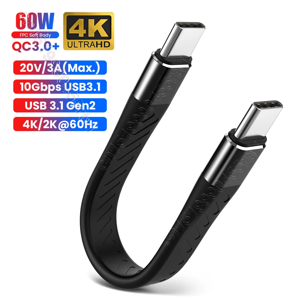 Cable de datos USB tipo C a USB C 3,1 Gen2 10Gbps para MacBook Pro USB C PD100W 60W 5A QC4.0 SSD de carga rápida Cable USB corto
