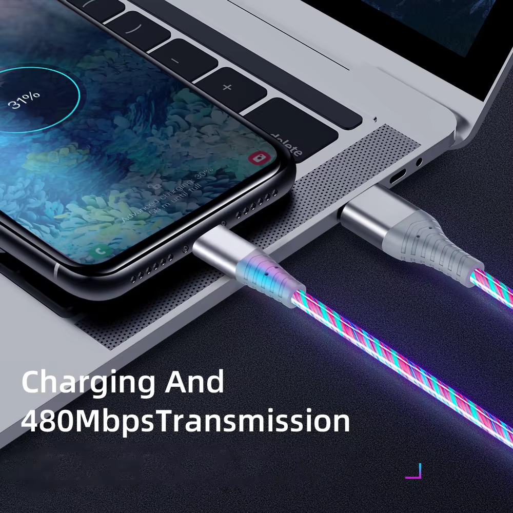 Comprar Cable de datos USB tipo C para móvil, cargador de carga rápida, 7A, 100W, flujo luminoso, para Huawei P50, Honor 3A, Xiaomi, Samsung, iPhone