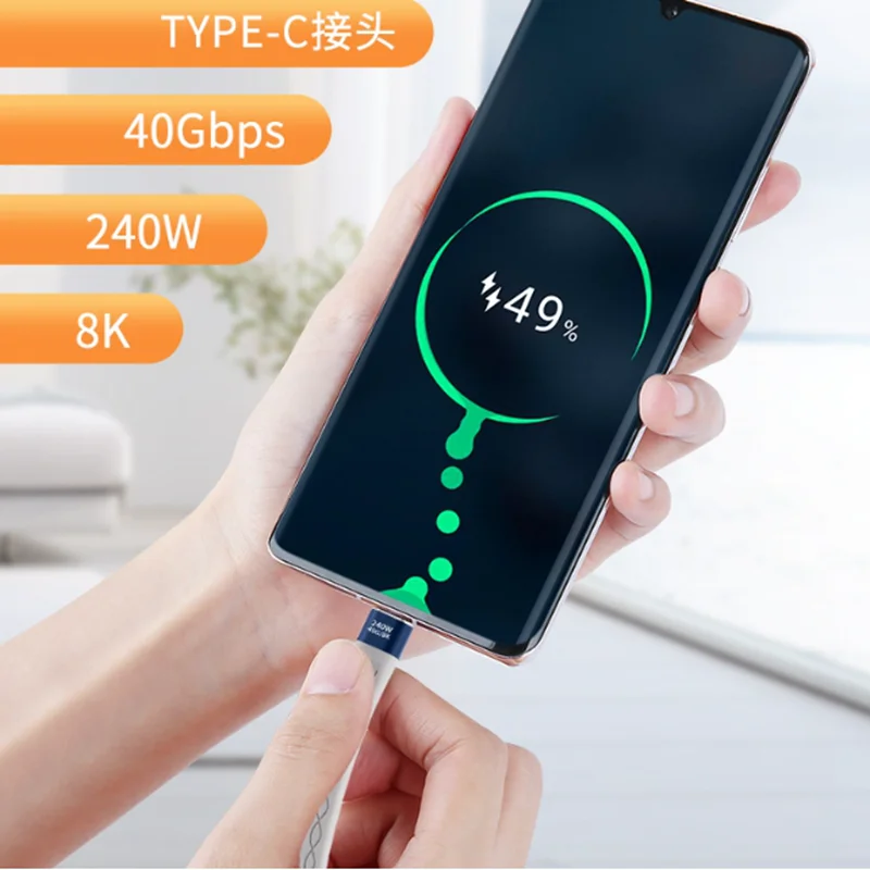 Carga PD de alta velocidad: chip E-marker incorporado, el estándar PD 3.1 admite carga rápida de 240 W, mientras que es compatible con versiones anteriores de los protocolos PD3.0 y 2.0, admite salida de alta potencia de hasta 48 V5 A.